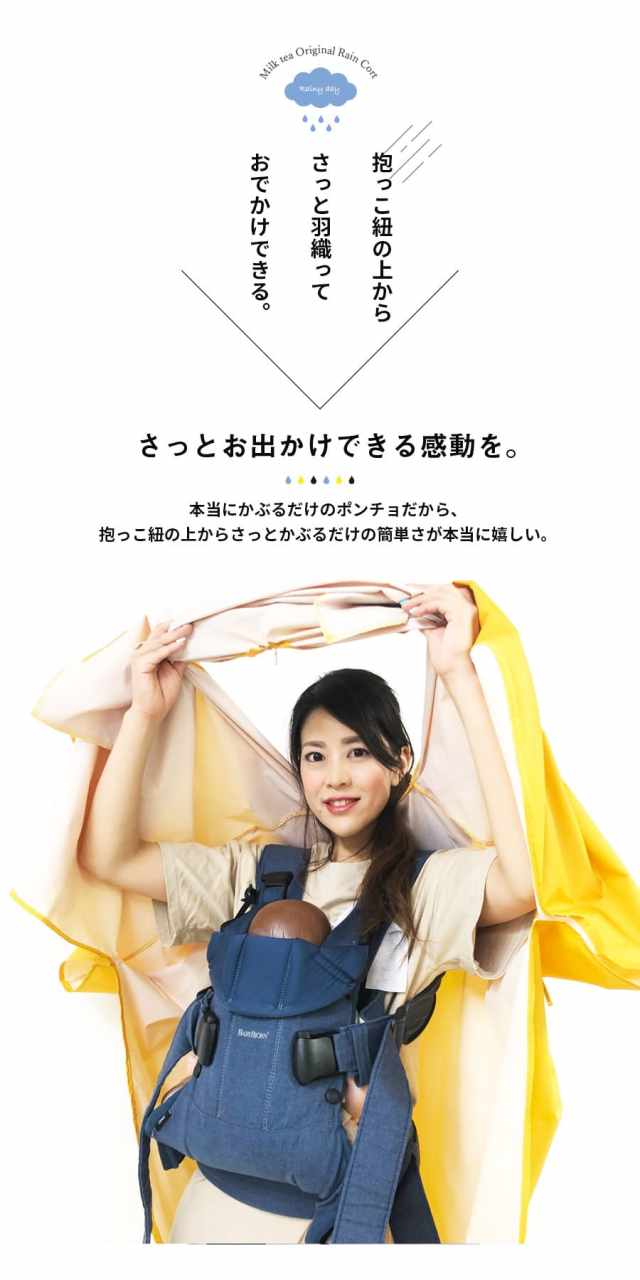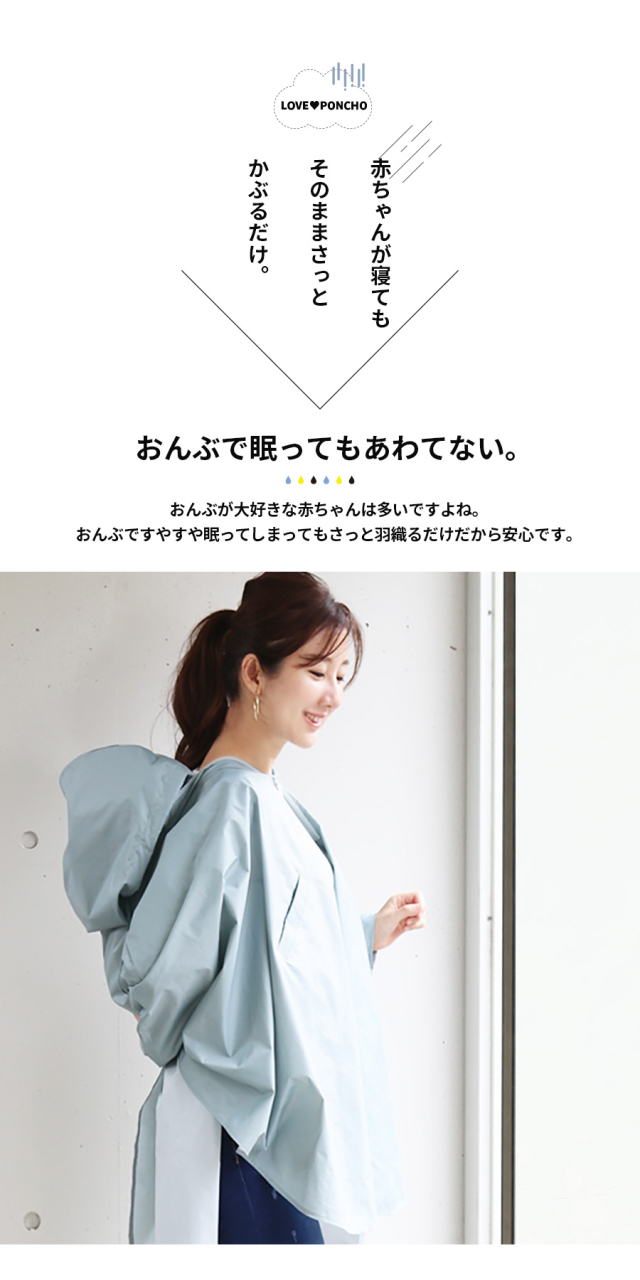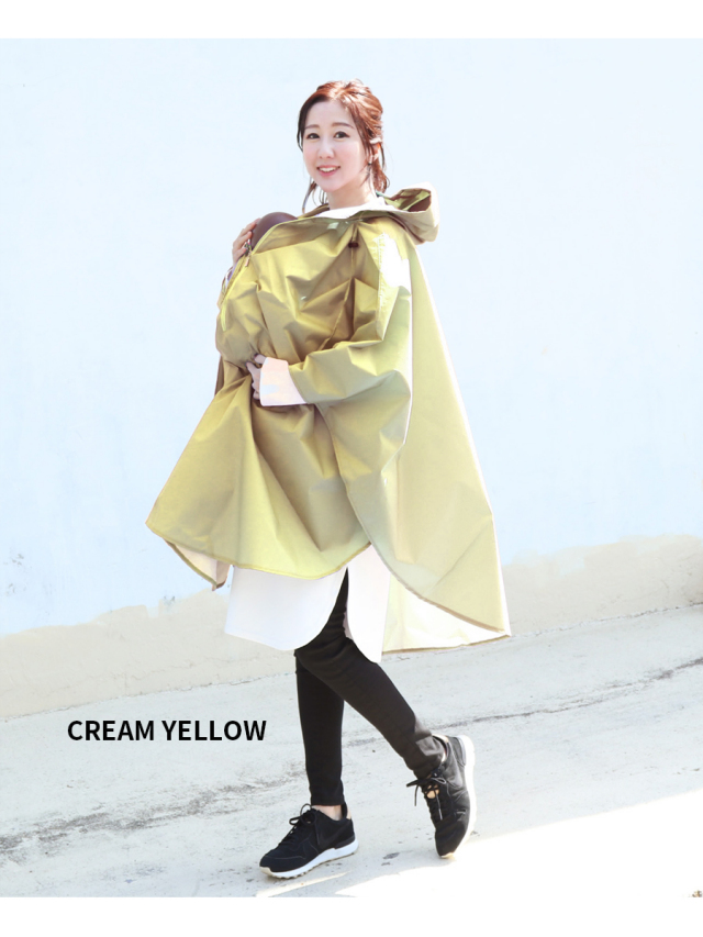 赤ちゃんとお母さんを一緒にすっぽりと包んでくれるレインポンチョです。