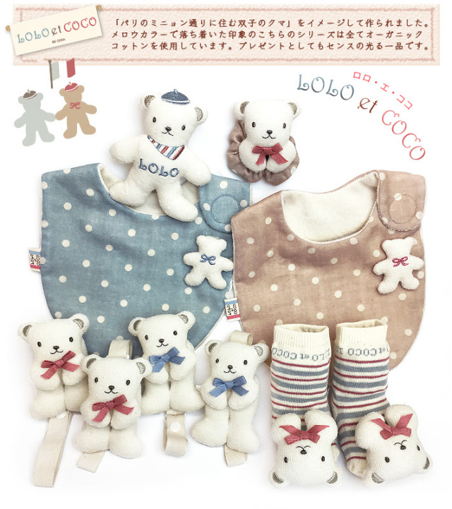 国内生産にこだわって、赤ちゃんに優しいものづくりを大切している〈ビセラ製作所〉の『LOLOetCOCO』シリーズはオーガニックコットン100%の高品質綿を使用したフレンチ風デザインの大人可愛いシリーズです。