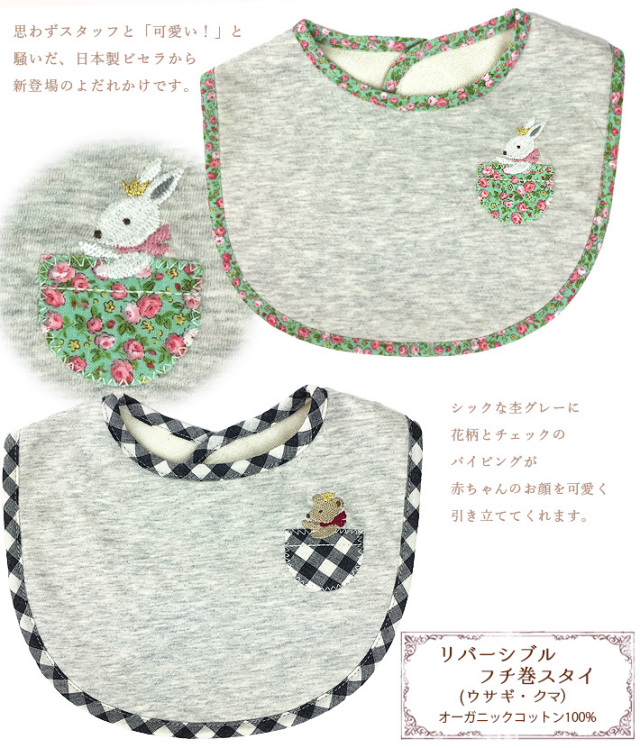 | 製品名: | 【ベビー日本製】リバーシブル・ふち巻スタイ(よだれかけ)オーガニックコットン100%★3枚までネコポス可 |