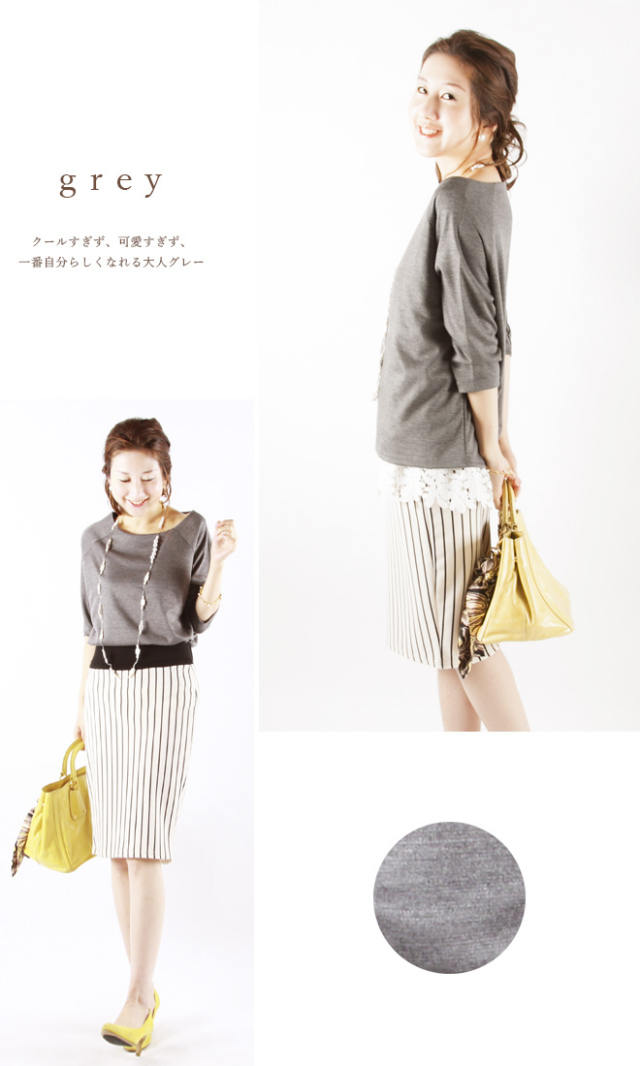 ゆるやかなボートネックや、肩のライン、レースの切り替え位置に工夫を凝らし、着ると驚く程美しいラインを作ってくれます。