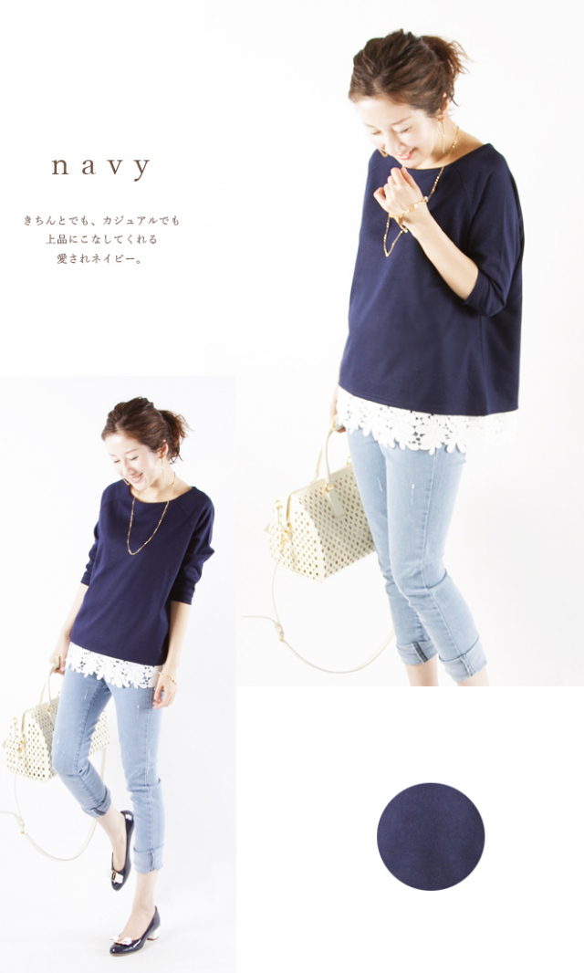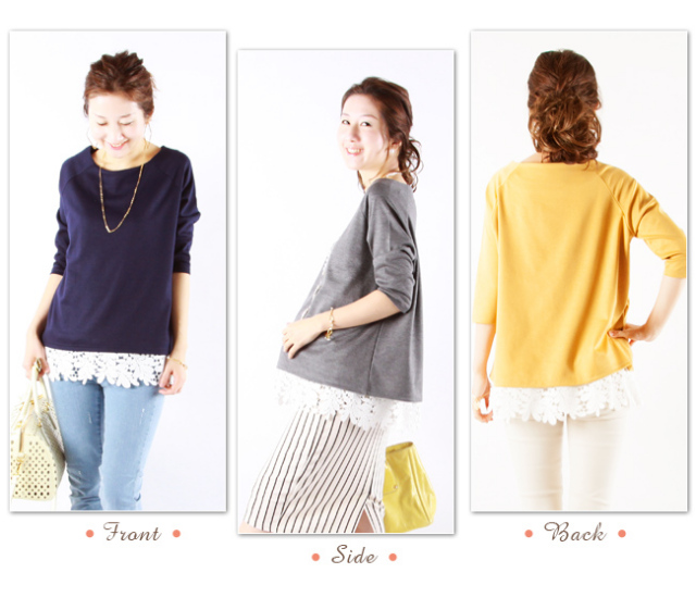 高級な綿レースを裾にあしらった、小粋な授乳服兼用マタニティチュニック