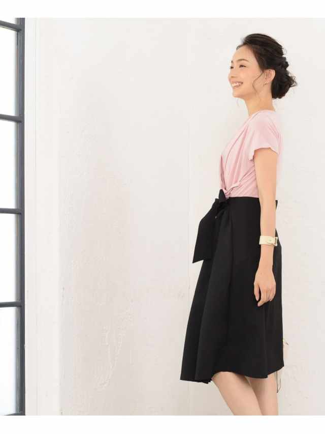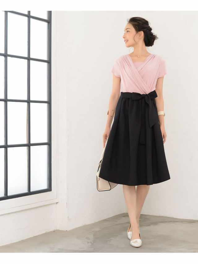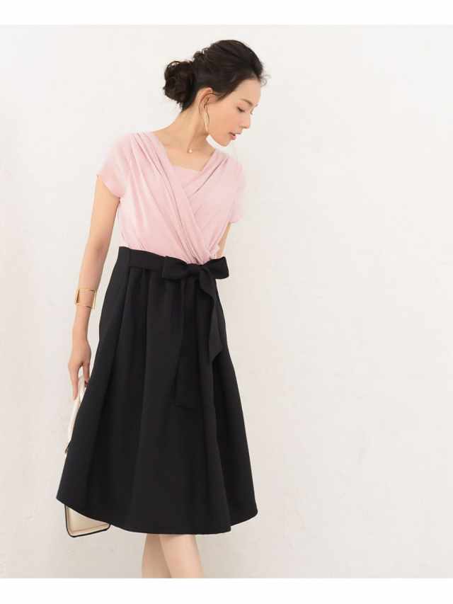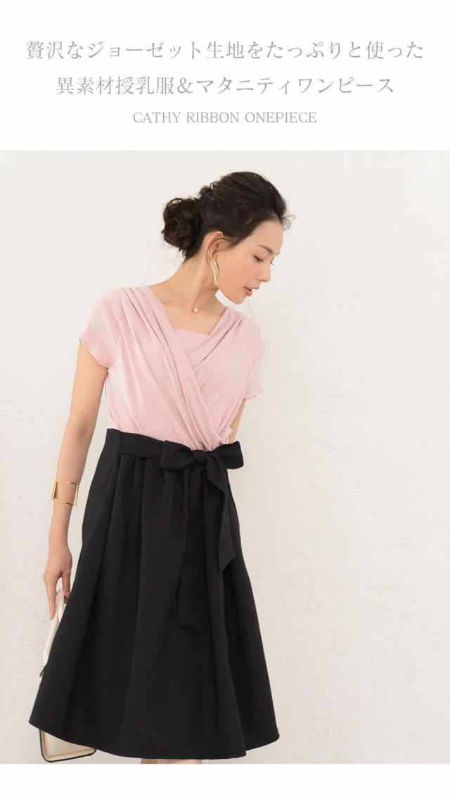 贅沢なジョーゼット生地をたっぷりと使った異素材授乳服&マタニティワンピース。リボンがシルエットを引き締め美しいラインを作ります
