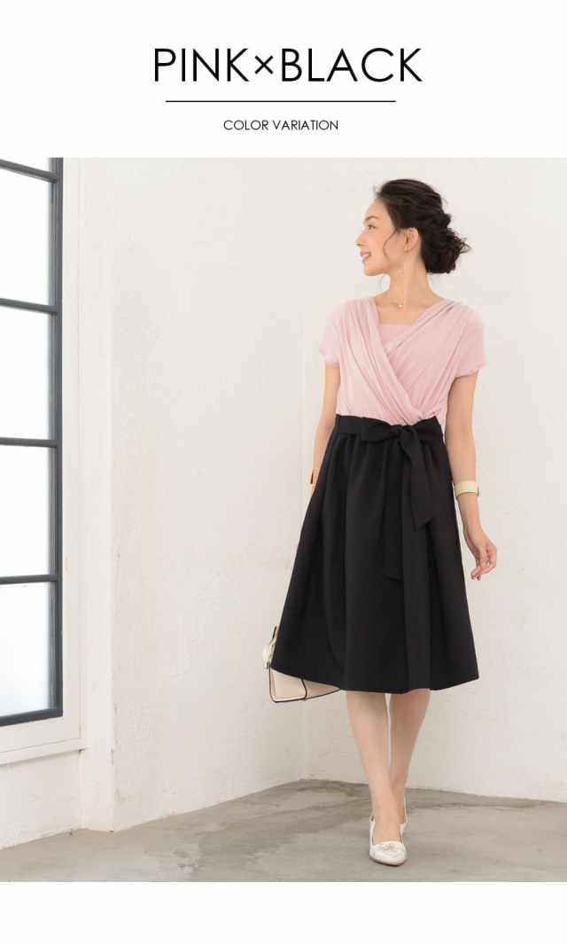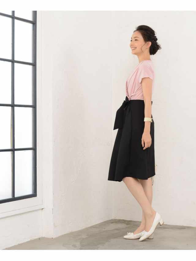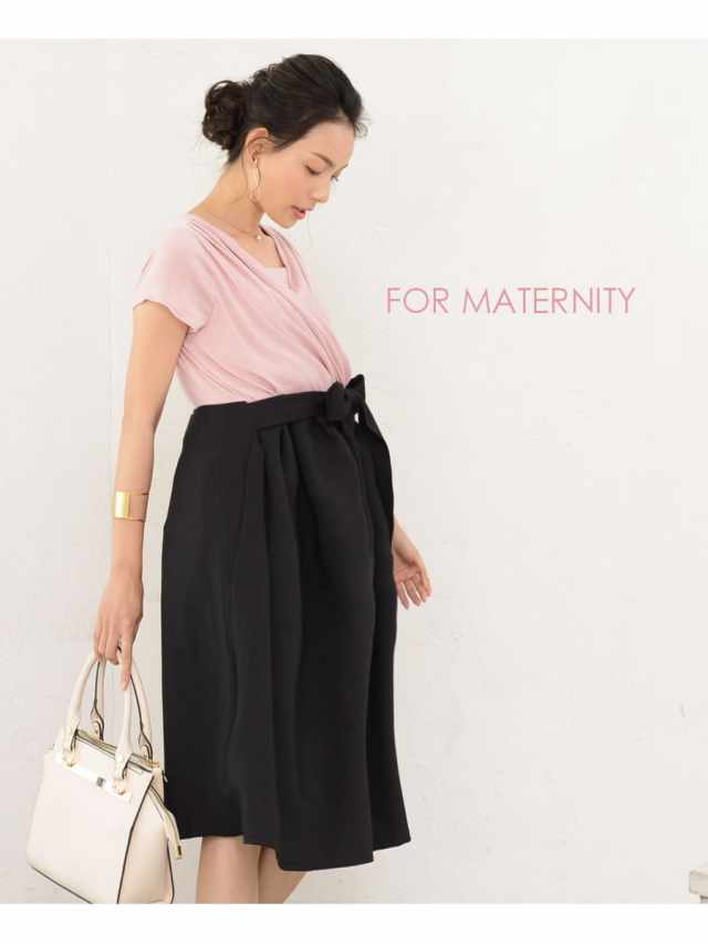 女優のようなたっぷりフレアーとリボンがレディな雰囲気を作る、美しい授乳服・マタニティワンピース。