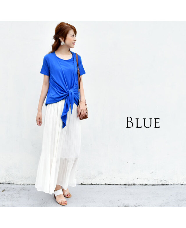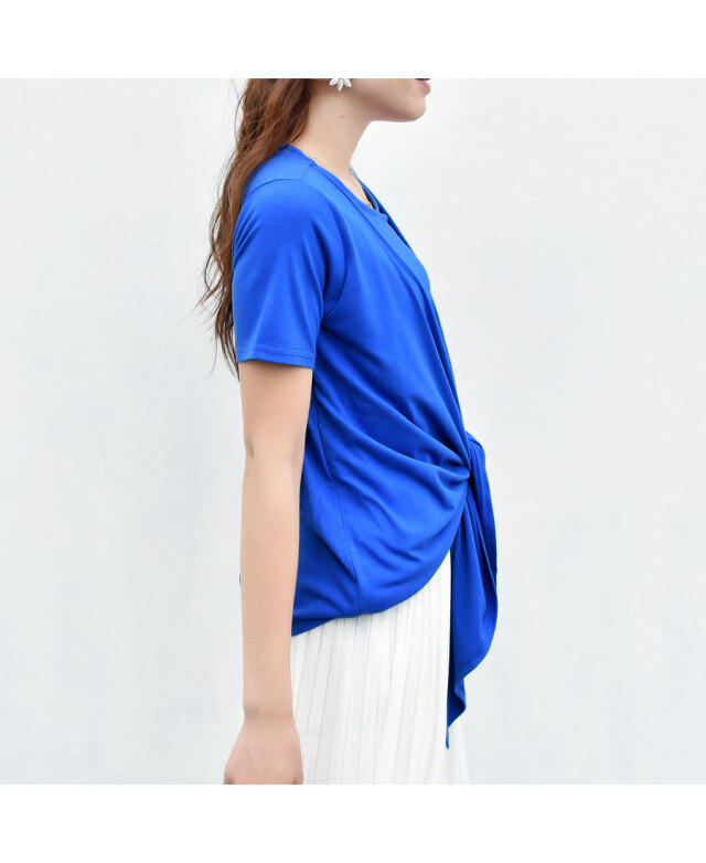 ドレープを前で結んだり、そのまま垂らしたり、カジュアルにもフォーマルにも使える授乳カットソー。季節やシーンを問わず大活躍