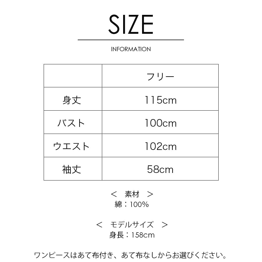 バスト100cm、ウエスト102cm、身丈115cm