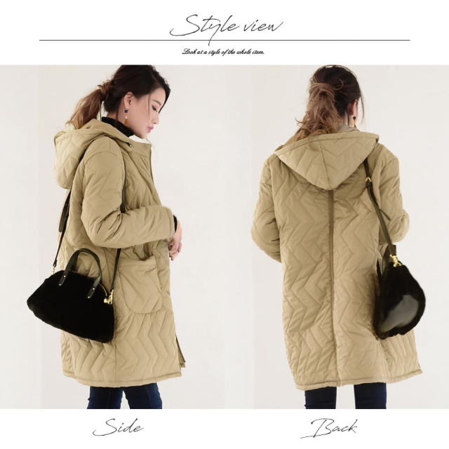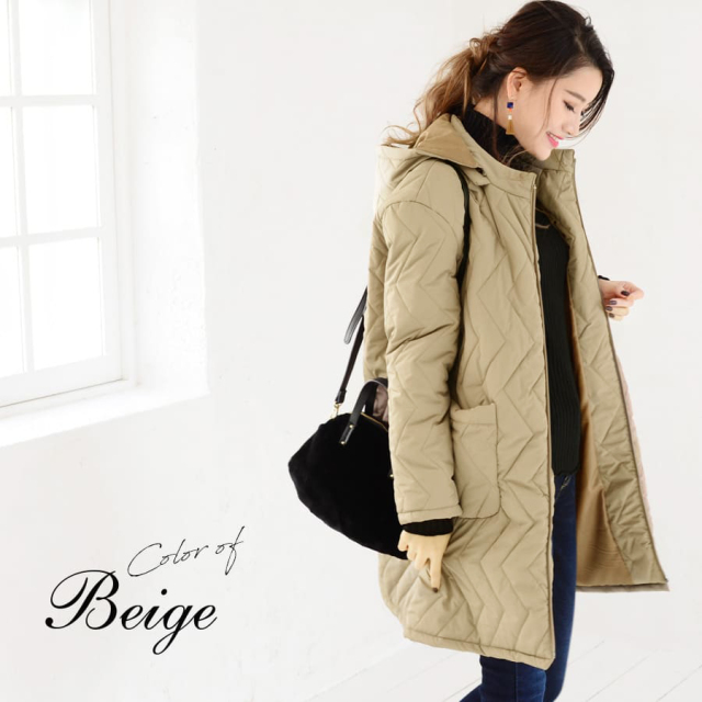 ミルクティーがずっと作りたかった、「カジュアルになりすぎない、大人のキルティング中綿コート」は、マタニティママも産後ママも、育児が終わったあともずっと着られるデザイン。カジュアルになりすぎないよう、キルティングパターンにもこだわりました。