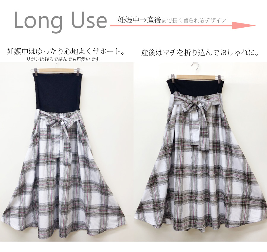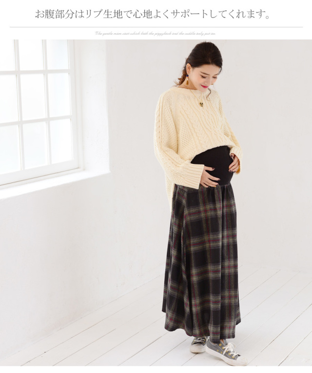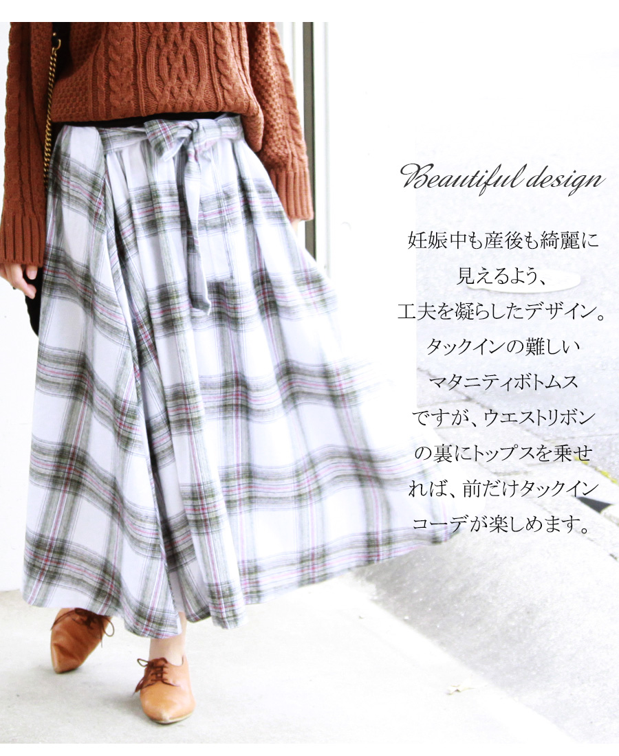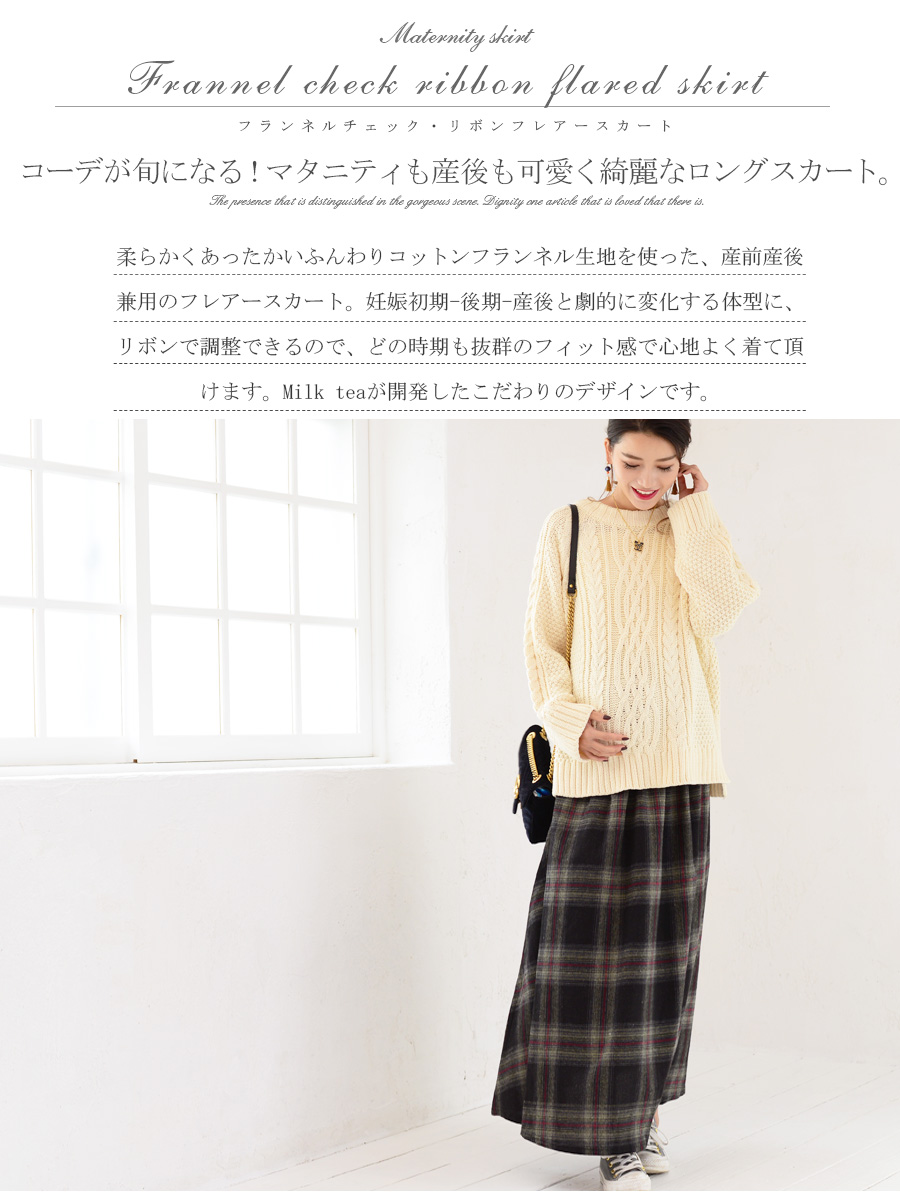 柔らかくあったかいふんわりコットンフランネル生地を使った、産前産後兼用のフレアースカート。