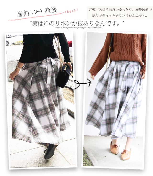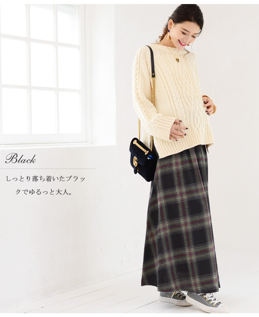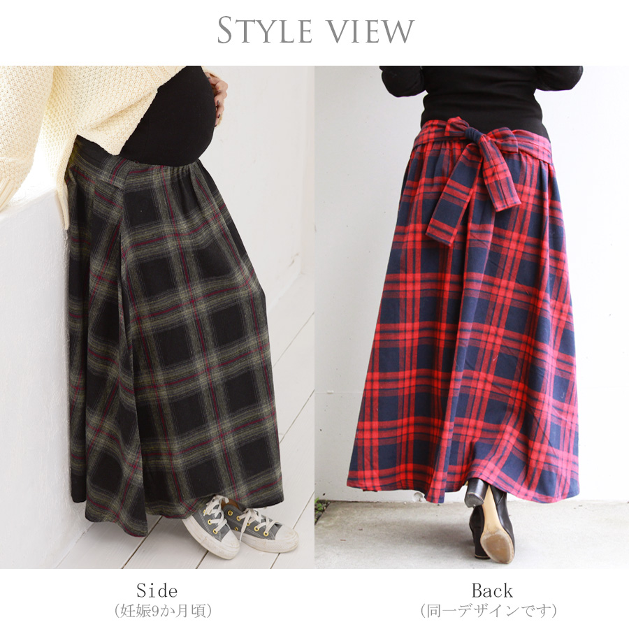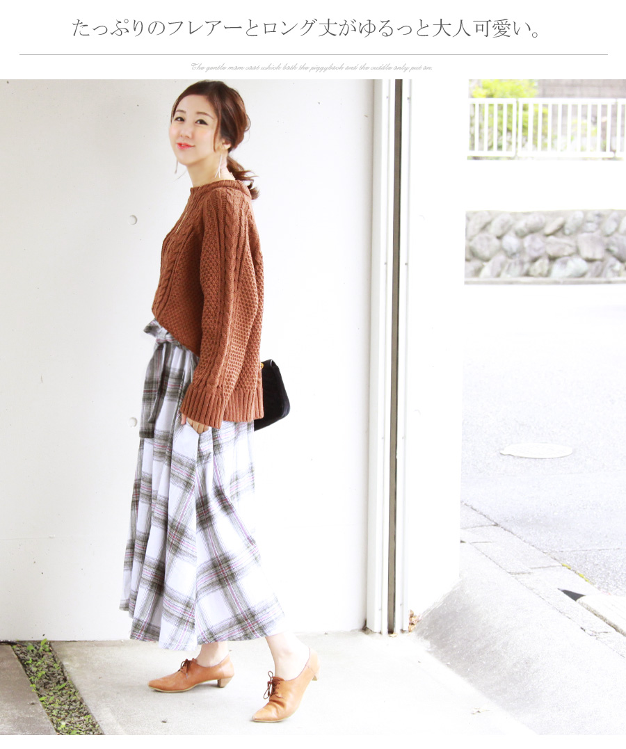 柔らかくあったかいふんわりコットンフランネル生地を使った、産前産後兼用のフレアースカート。