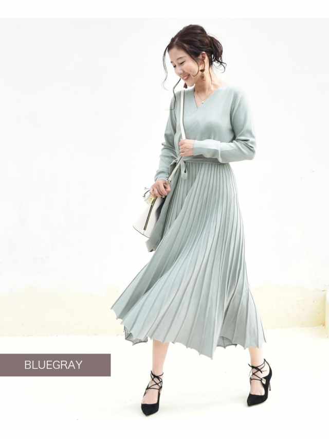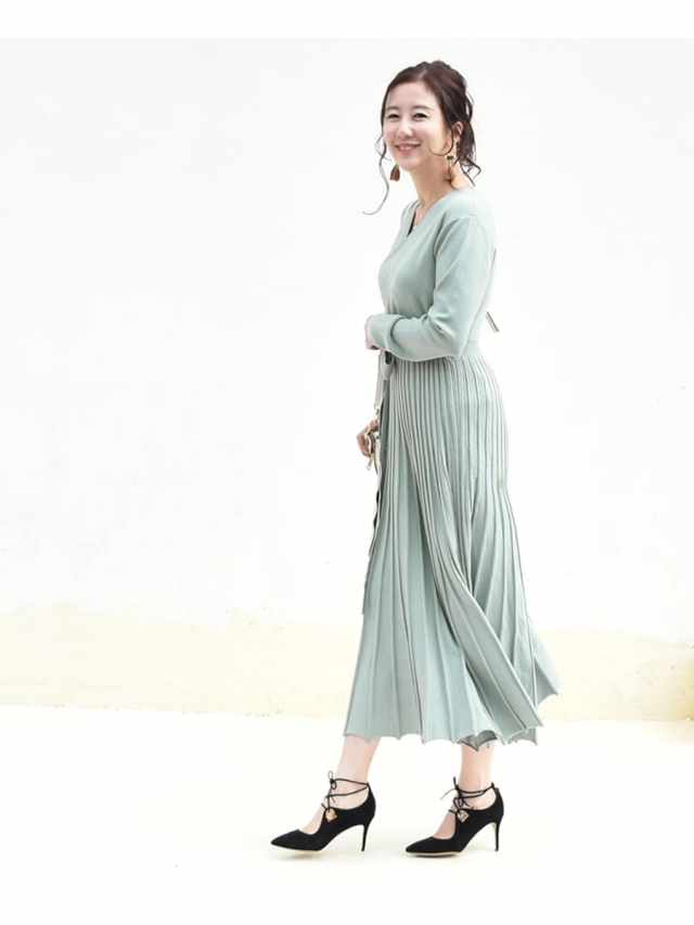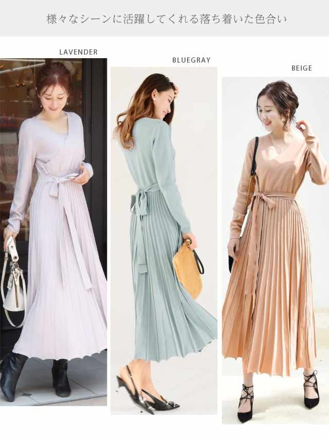 カシュクールと縦長のプリーツ、ミモレ丈で抜群に美しいシルエットを保ちます。