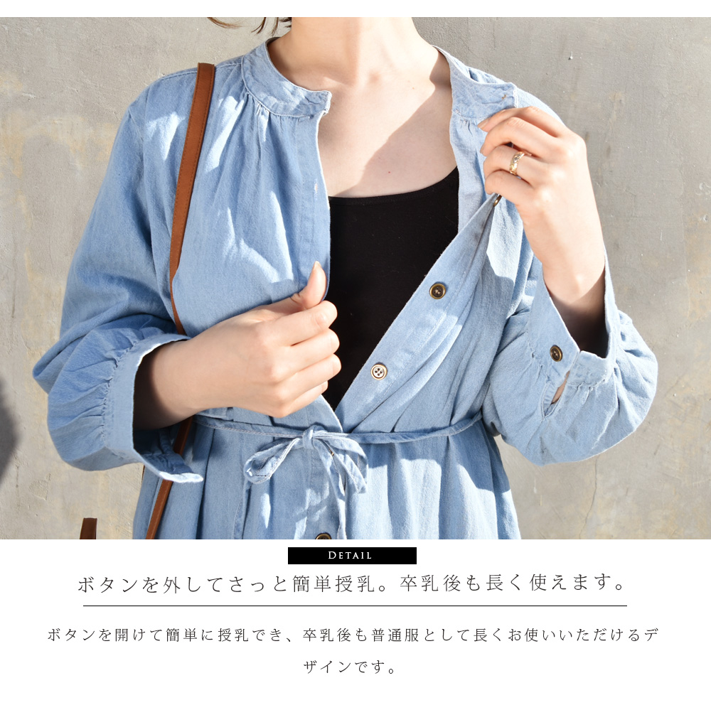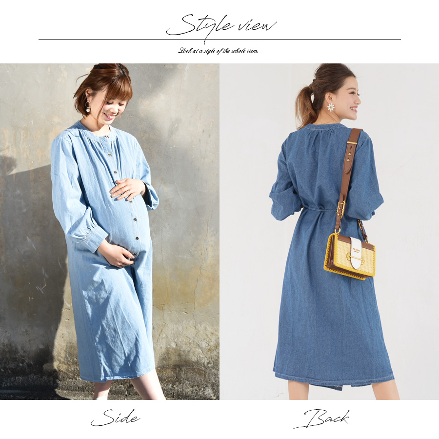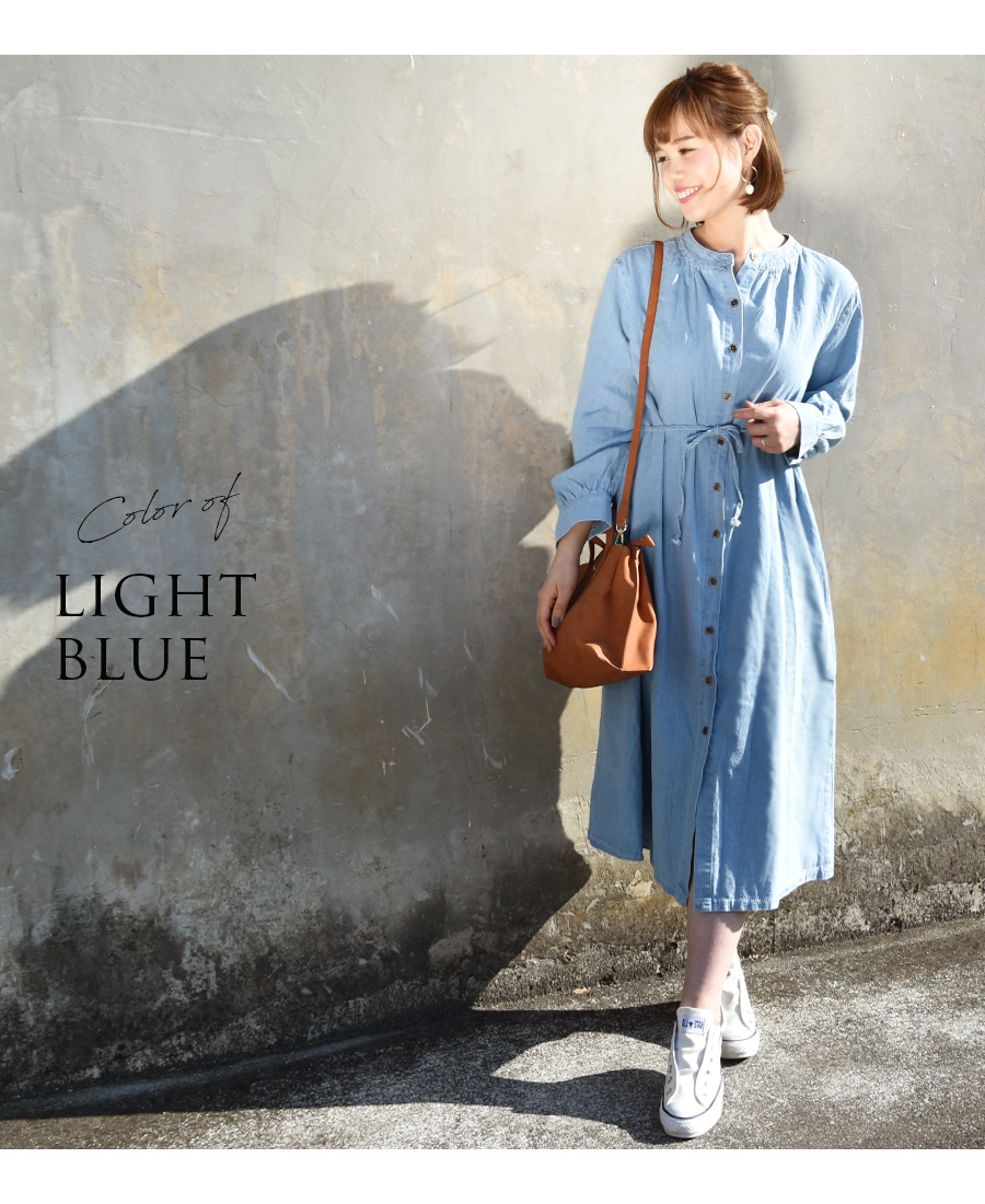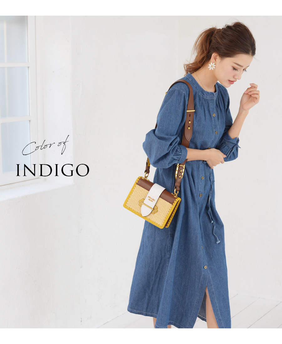 どこかレトロなラウンドネックにたっぷりのギャザーを寄せたヴィンテージ感あるデニムワンピース。