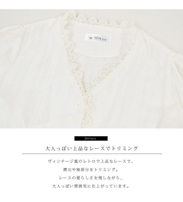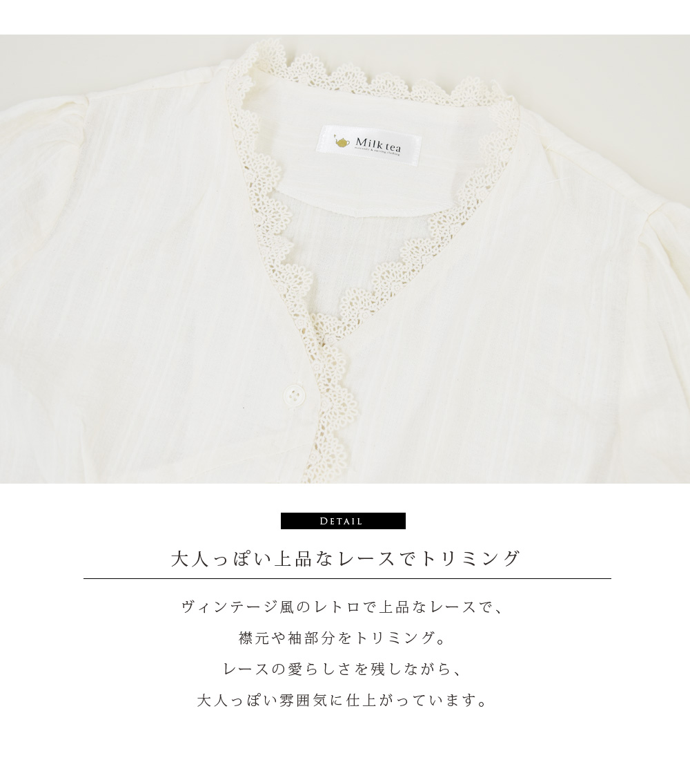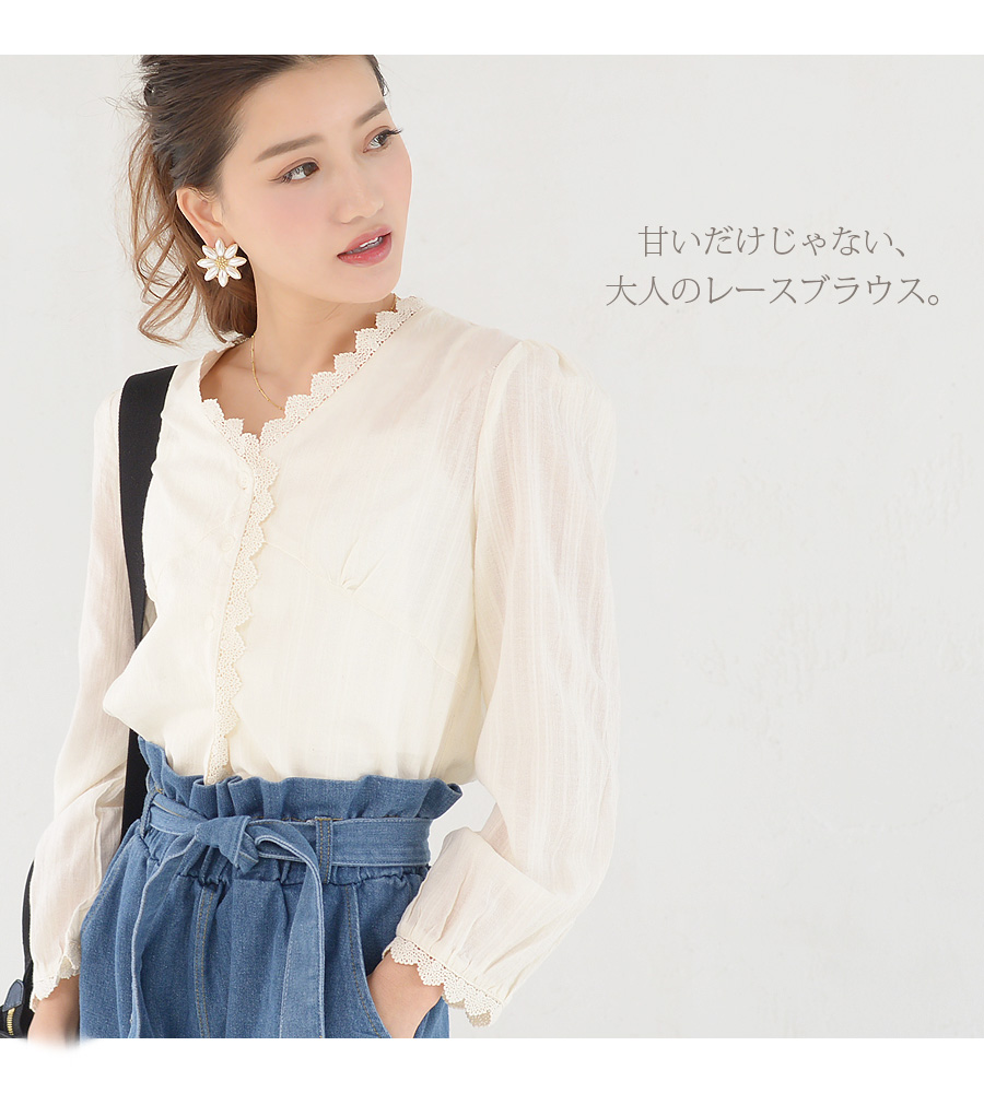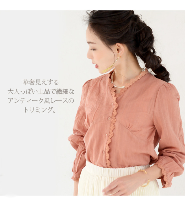 アンティーク風レースがアクセントの愛らしくて繊細なブラウス