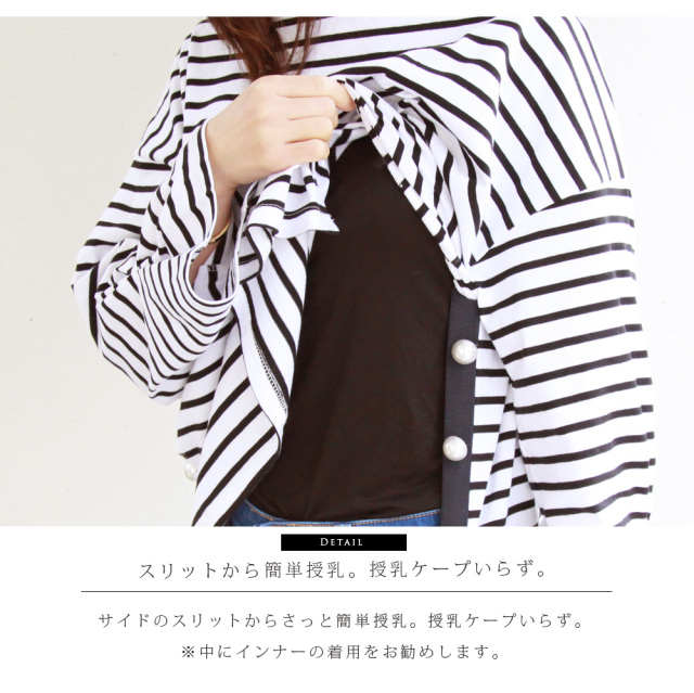 サイドにはころんとしたパールボタン、袖はさりげないタック使いが印象的で愛らしい一枚です。
