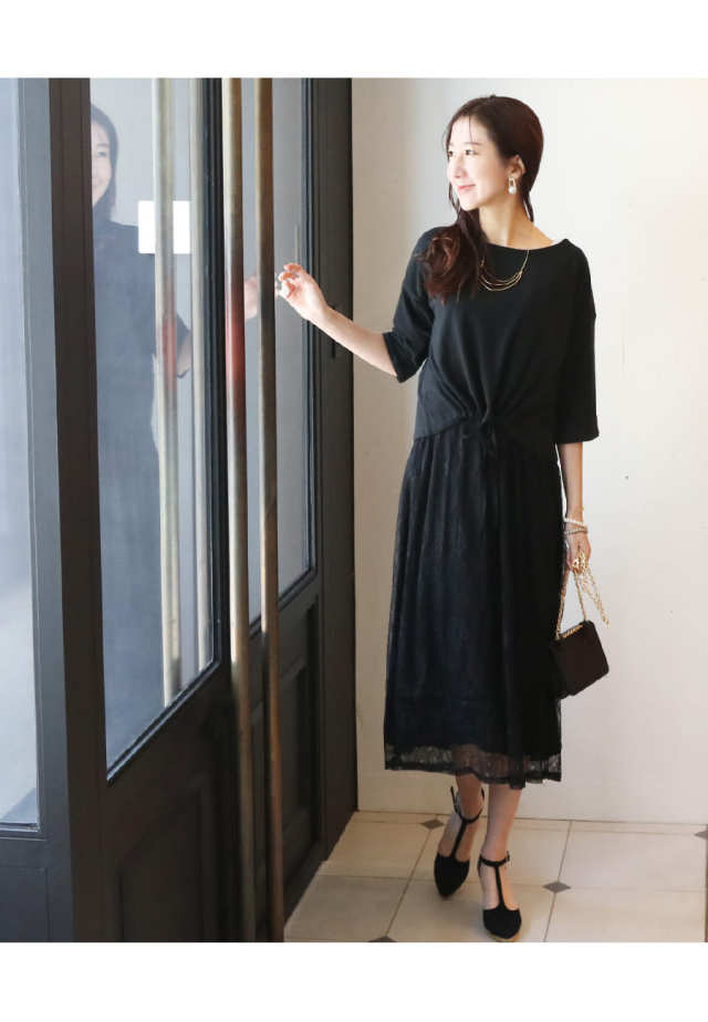 ふんわり柔らかいトップスと、美しい透け感のシアーレースのドッキングワンピース。