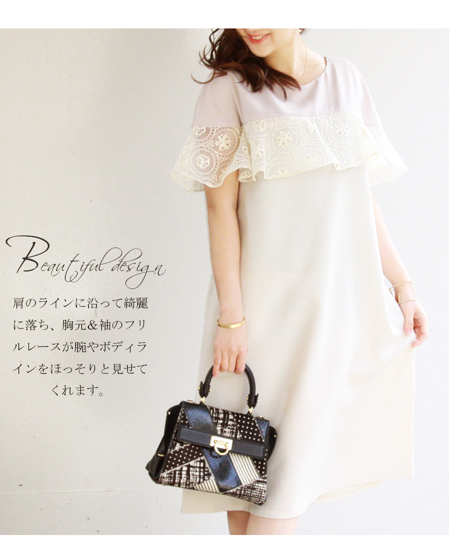 ふんわりと立体的なフォルムを作る、美しく繊細な高級レースが上品で可憐なリトルドレス。