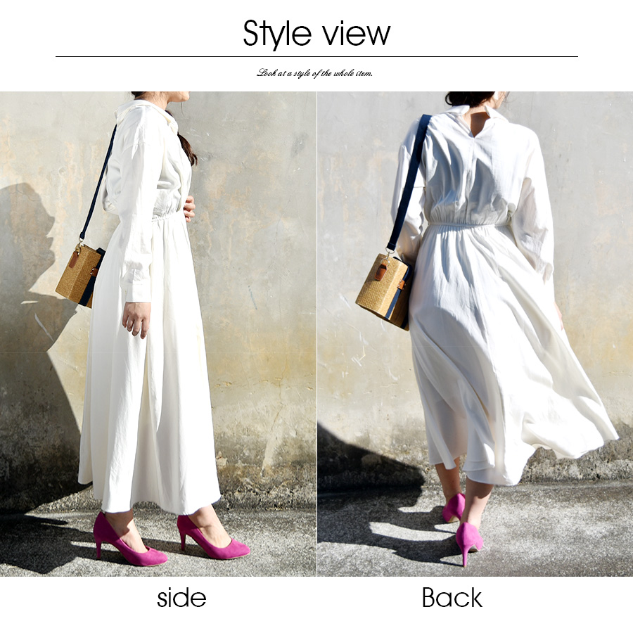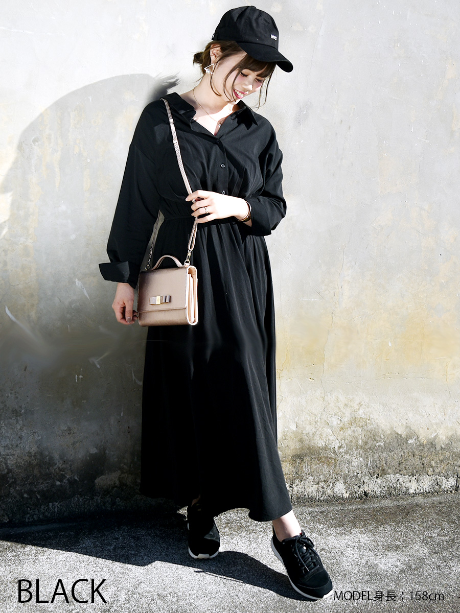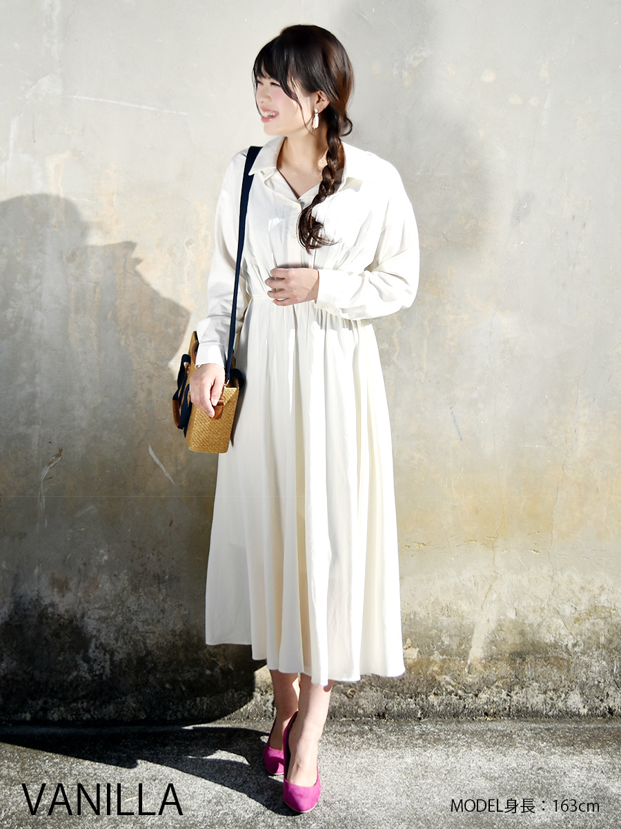 ふわっとボリューミーなシルエットのシャツワンピース。