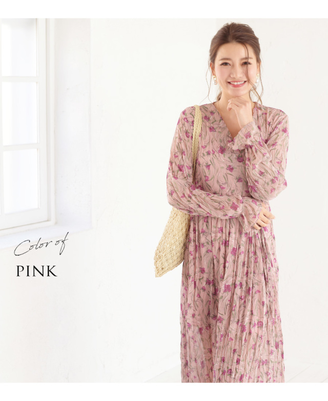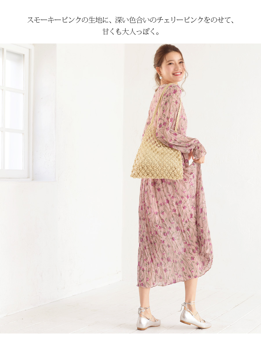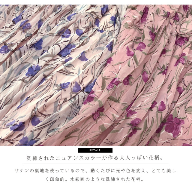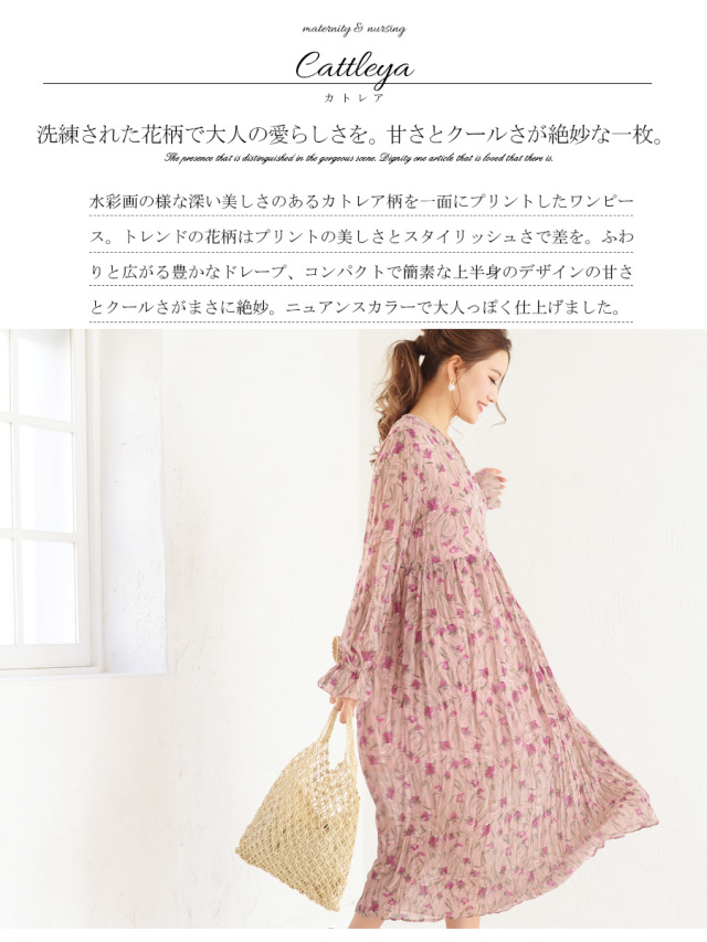 水彩画の様な深い美しさのあるカトレア柄を一面にプリントしたワンピース。