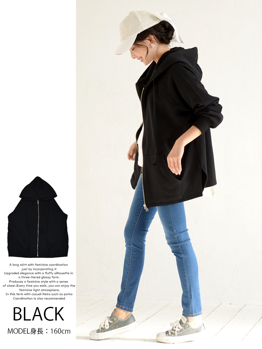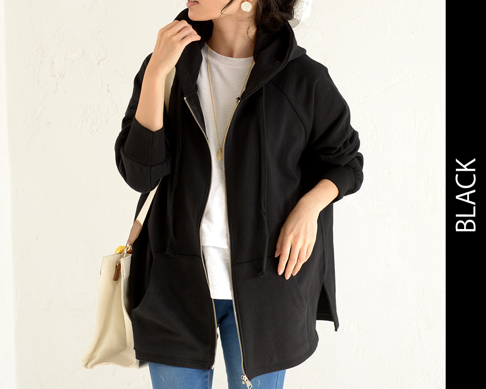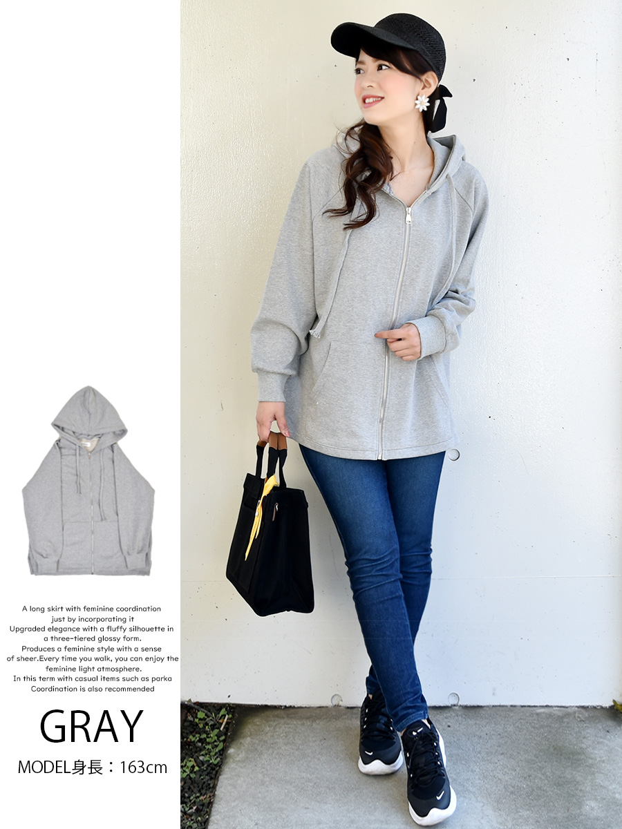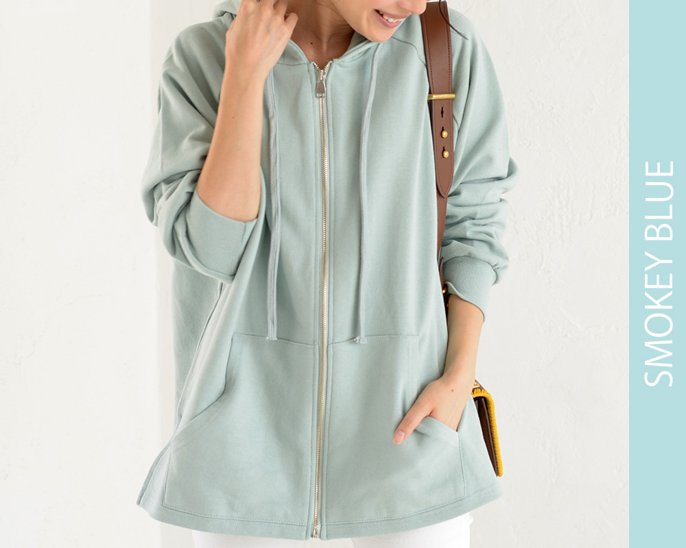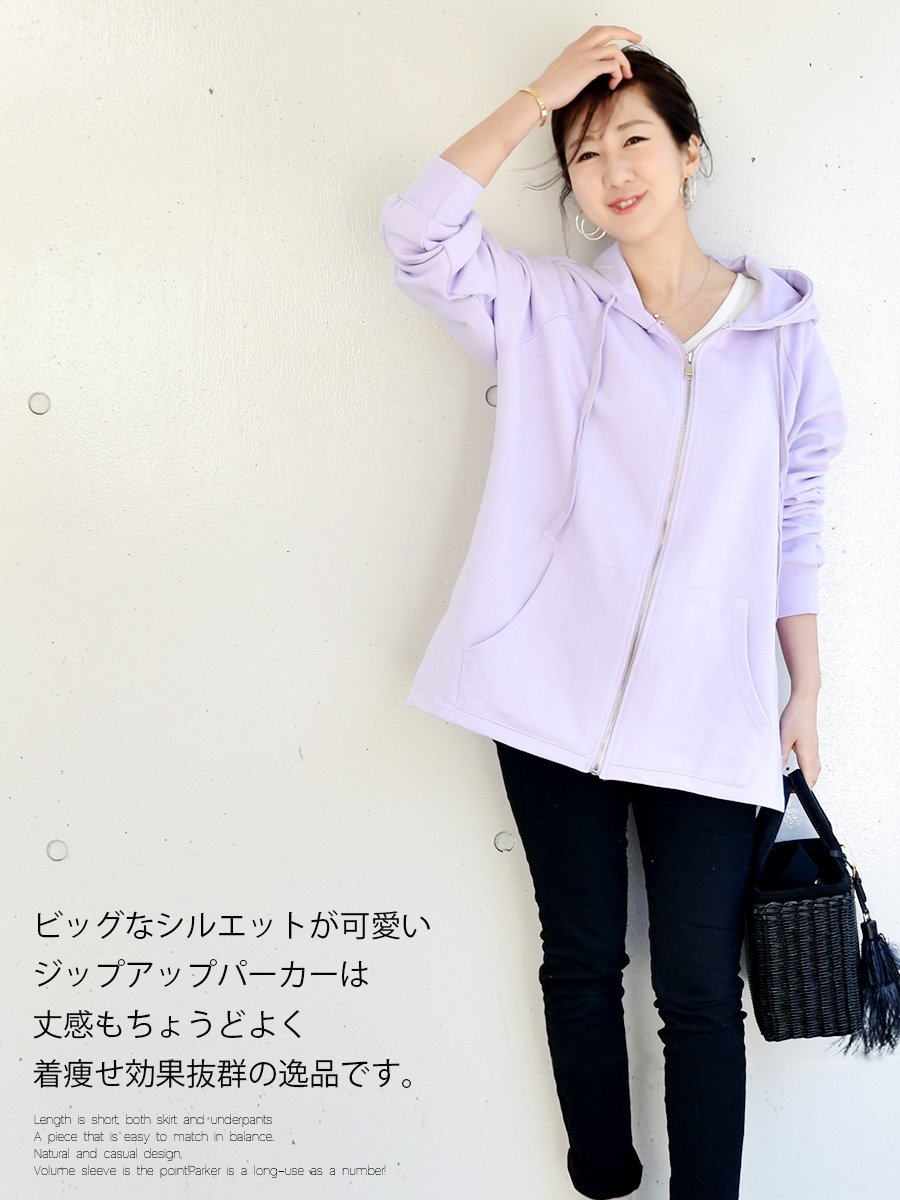 今季トレンドのオーバーサイズパーカー!ジップを開けて