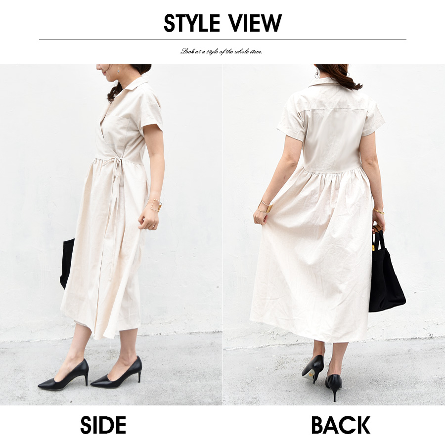 大人の品格漂うカシュクールタイプウエストリボンをキュッと縛りメリハリあるシルエットに。