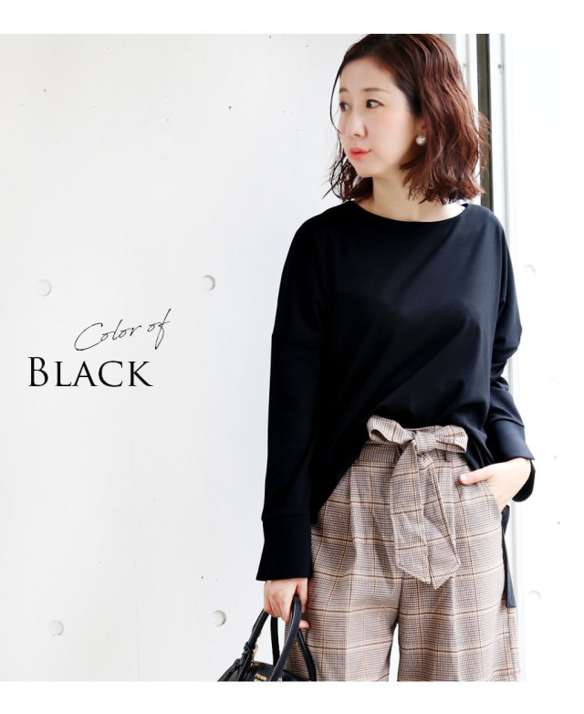 フロントとバッグで長さの違う着丈と、ビックシルエットなのにスッキリ見えるラインでパンツやスカートのタックインも上手にできます。