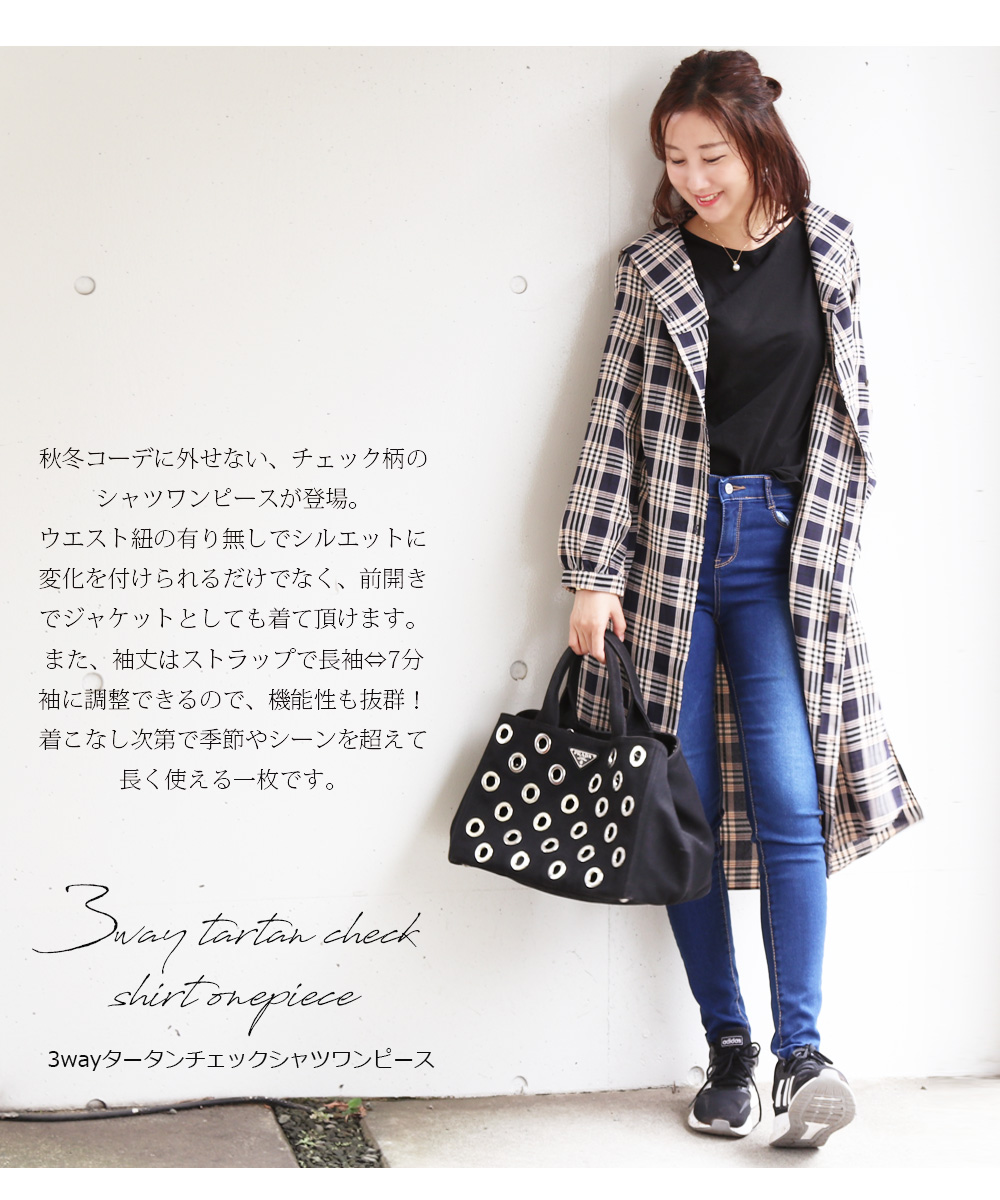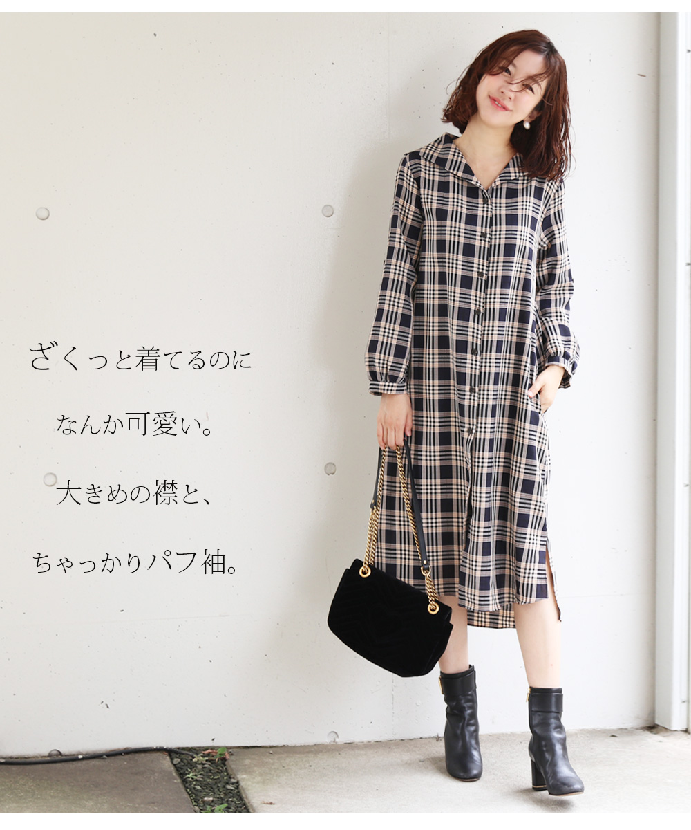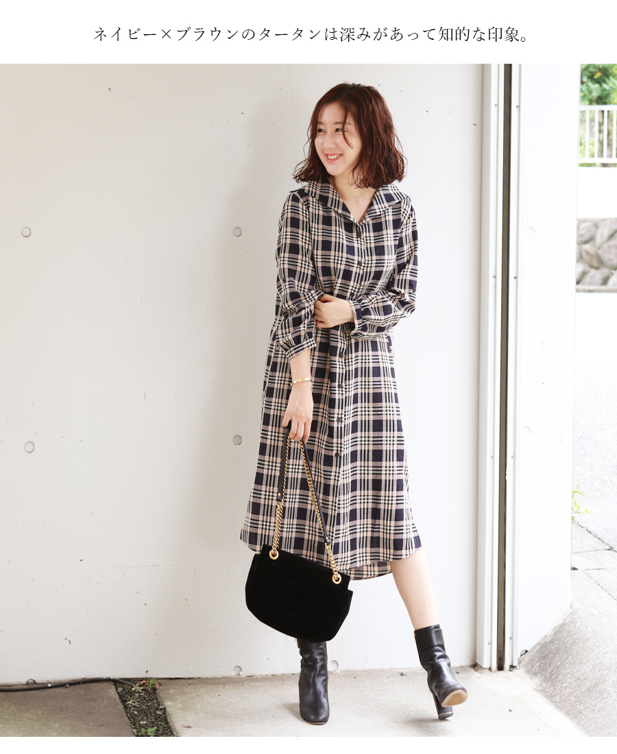 秋冬コーデに外せない、チェック柄のシャツワンピースが登場。