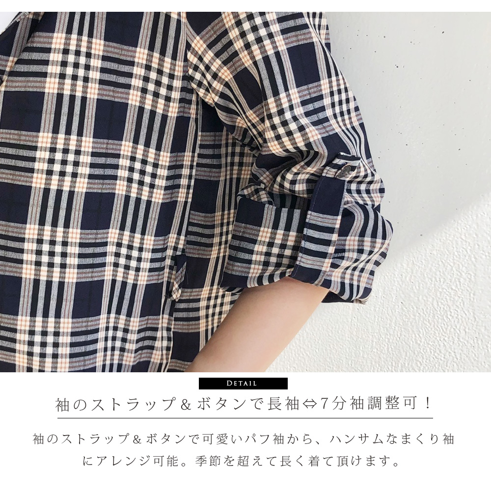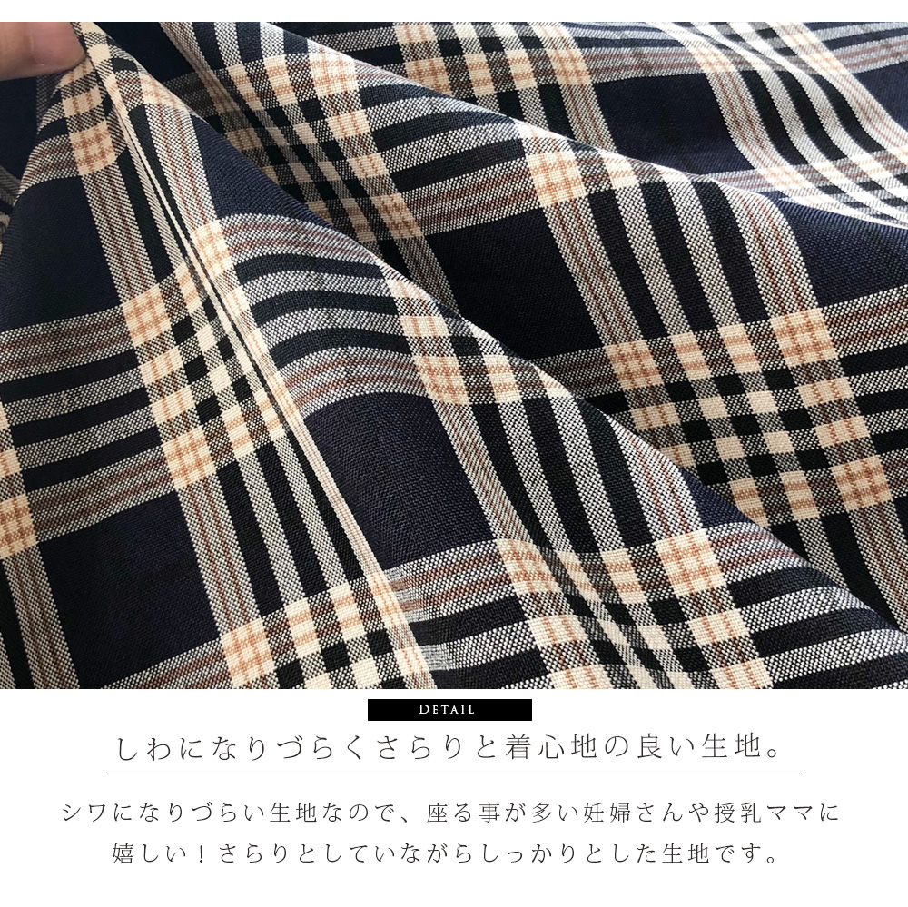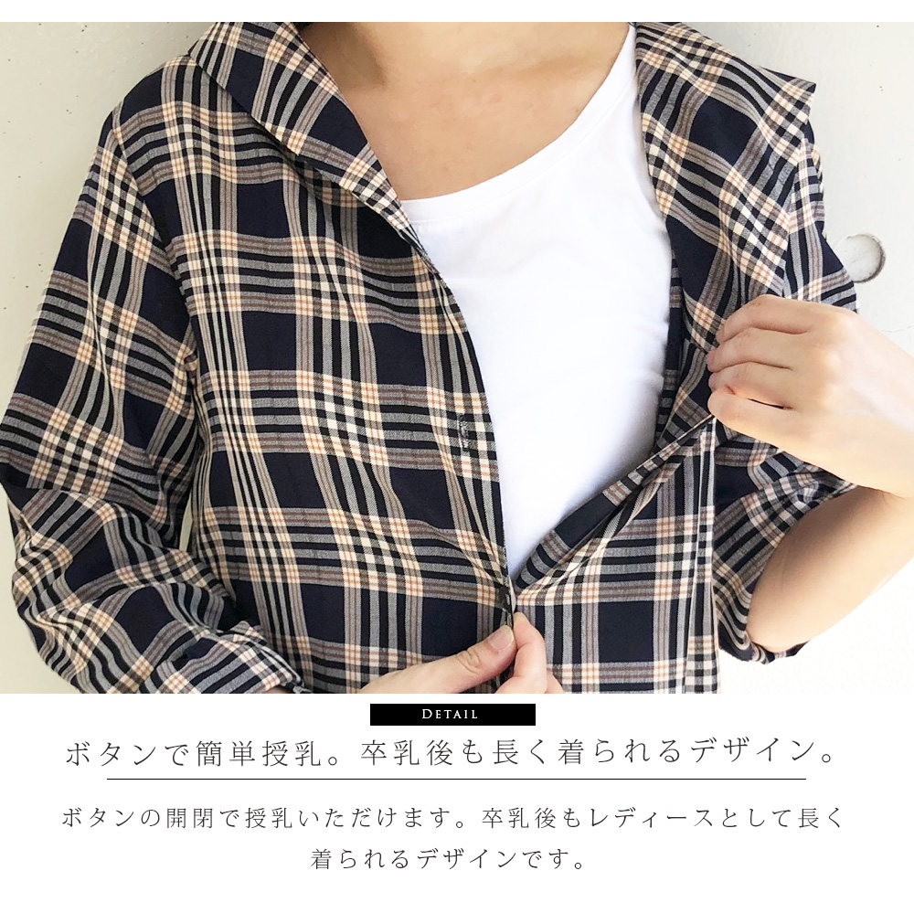 商品カテゴリ:授乳 授乳服 シャツワンピース ワンピ 授乳ワンピース マタニティ ビッグ ワンピース 長袖 7分袖 秋 チェック チェック柄ワンピ