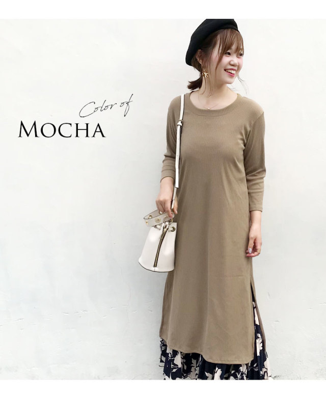 授乳服とマタニティー服のミルクティーオリジナル・リブ素材のチュニック&ワンピース「アリア」は、厳選した上品な艶のあるリブをたっぷり使った人気のデザイン。