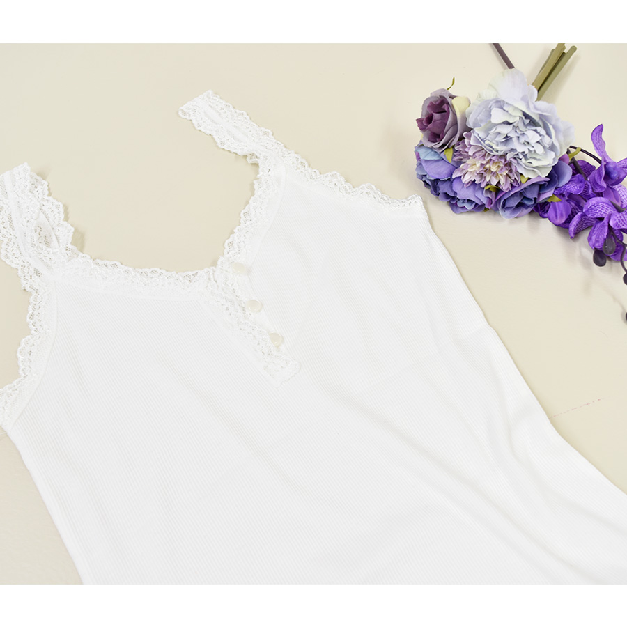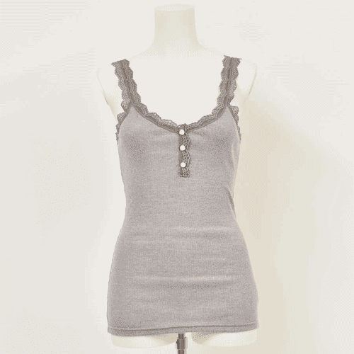胸元レースが美しく品の高見えするデザインキャミソールが登場。