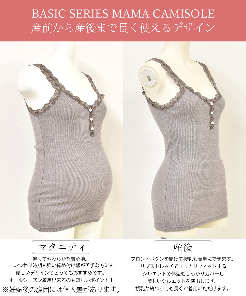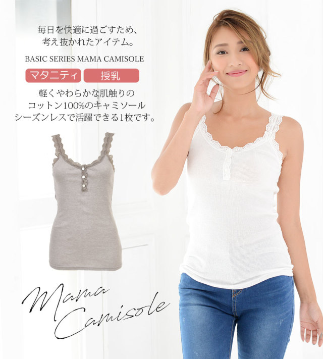 商品カテゴリ:コットン100% キャミ リブニットキャミ リブ キャミソール リブキャミ レース マタニティ 授乳 産前 産後 収縮性 フリーサイズ モカ ブラック ホワイト グレー