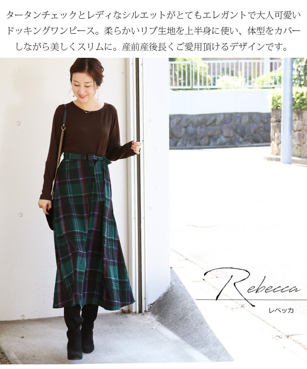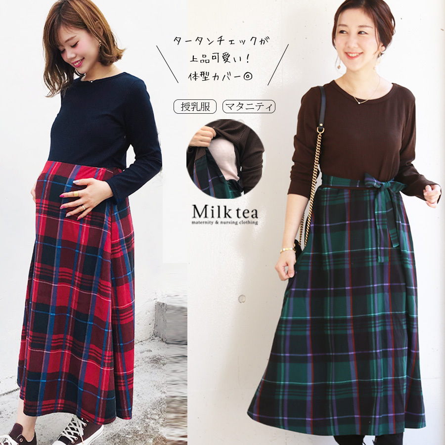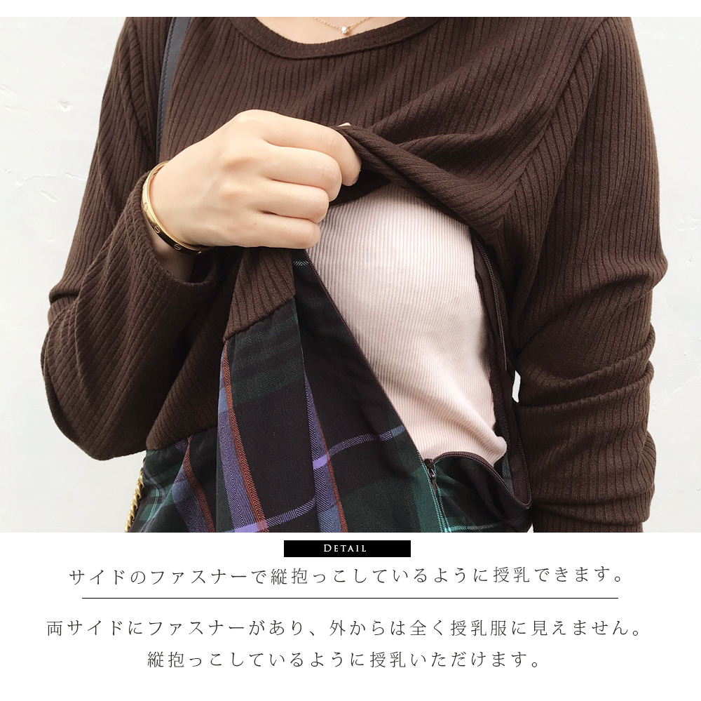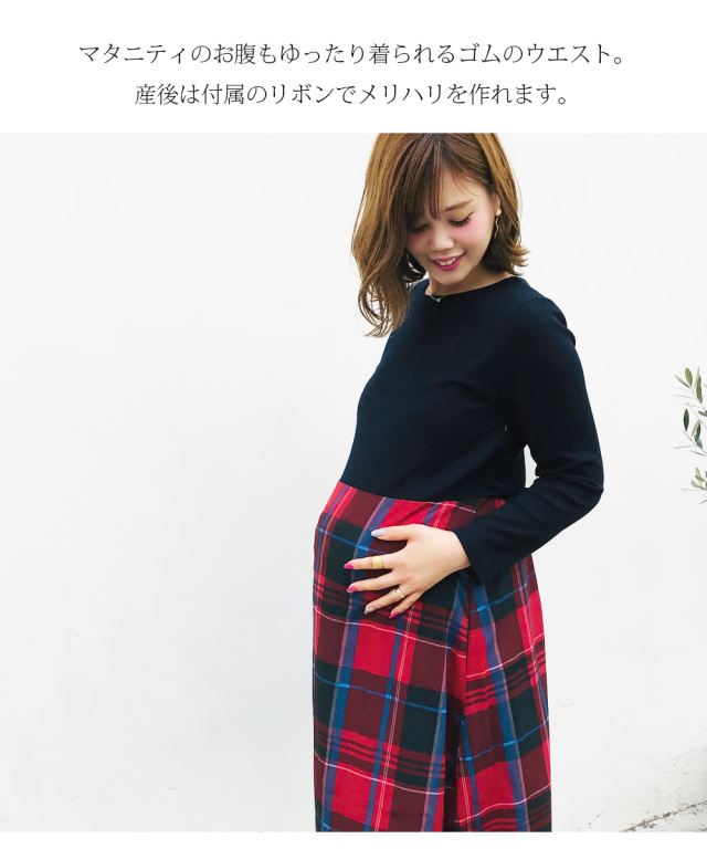 商品カテゴリ:授乳服 マタニティ服 授乳 マタニティ レディース ワンピ ワンピース チェック タータンチェック 長袖 フレアースカート ドッキングワンピ 異素材 ミックス 産前産後 マタニティウェア 出産準備