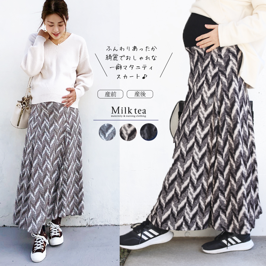 商品カテゴリ: マタニティ スカート 産前産後 兼用 妊婦服 マタニティスカート マキシスカート ロング 冬 起毛 ニット 妊娠中 マタニティ服 マタニティウェア Milk tea ミルクティー