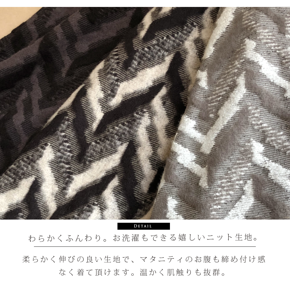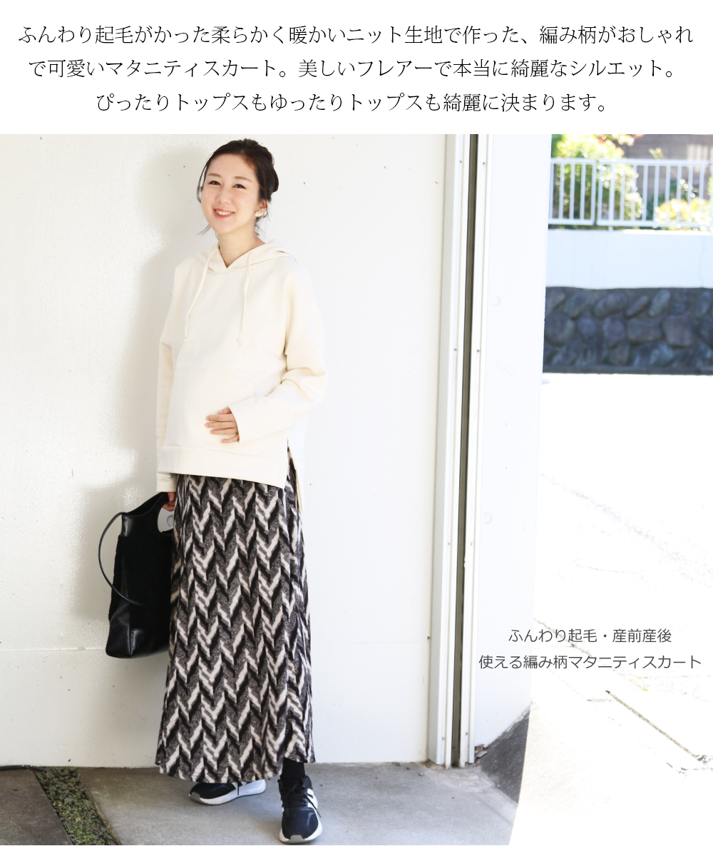 ふんわり起毛がかった柔らかく暖かいニット生地で作った、編み柄がおしゃれで可愛いマタニティスカート。