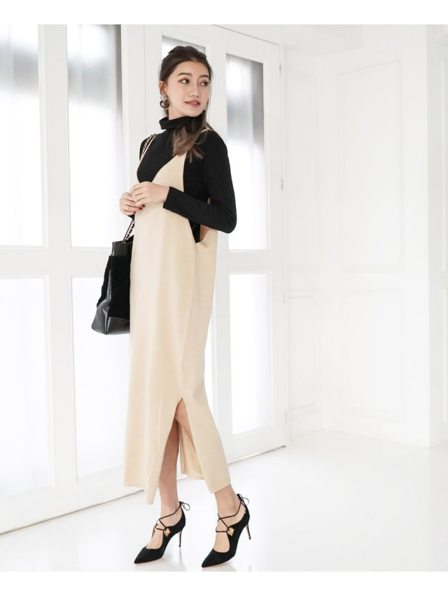 商品カテゴリ:授乳服 授乳 ワンピース マタニティウェア マタニティ ニット キャミワンピ ジャンパースカート ジャンスカ サロペット ワンピース ちくちくしない 冬 妊婦服 妊娠 産後 服 授乳用 マキシワンピースMilk tea ミルクティー