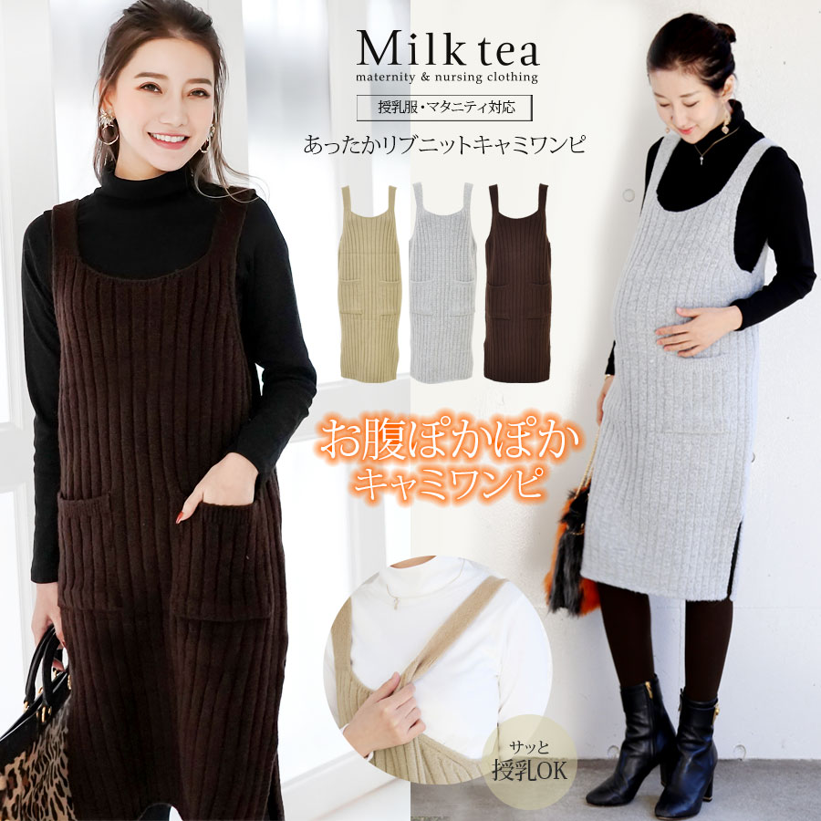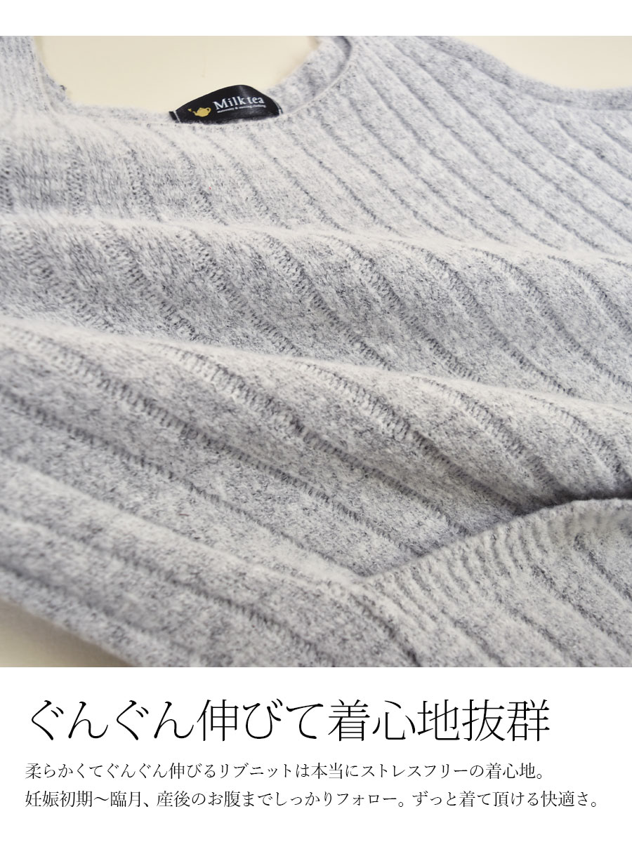 商品カテゴリ: 授乳服 授乳 マタニティ服 マタニティ 妊娠 妊婦 防寒 保温 暖か 秋 冬 レディース ワンピース ワンピ リブ ニット ニットワンピ スカート チュニック Milk tea ミルクティ ミルクティー S M L LL