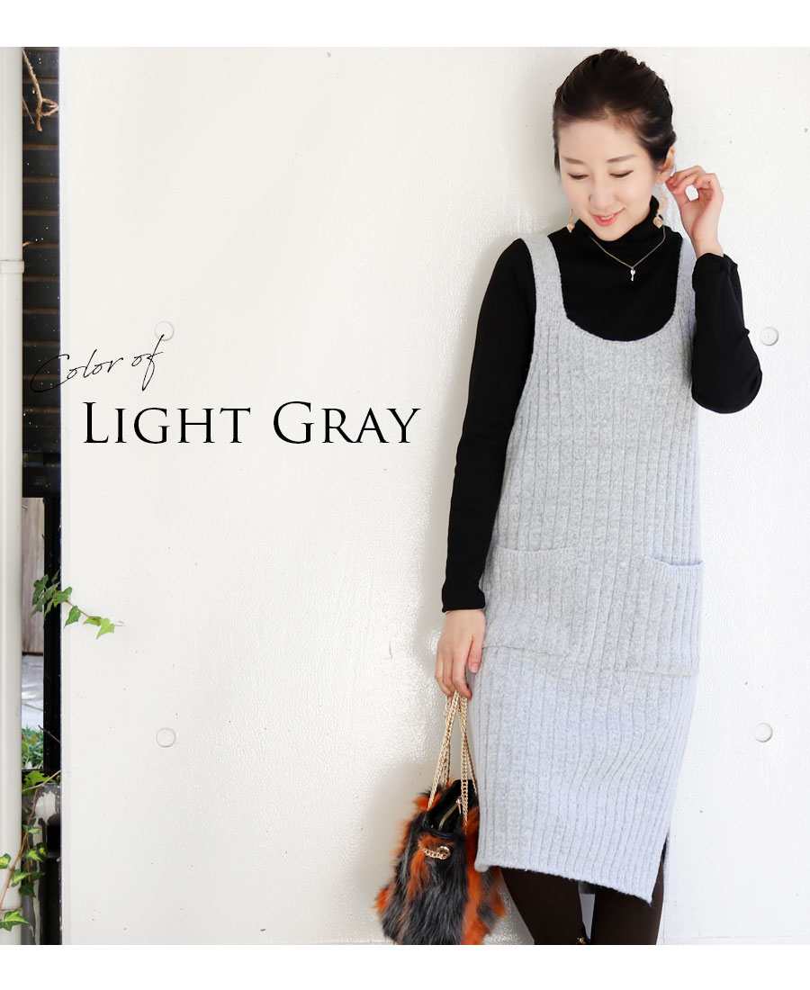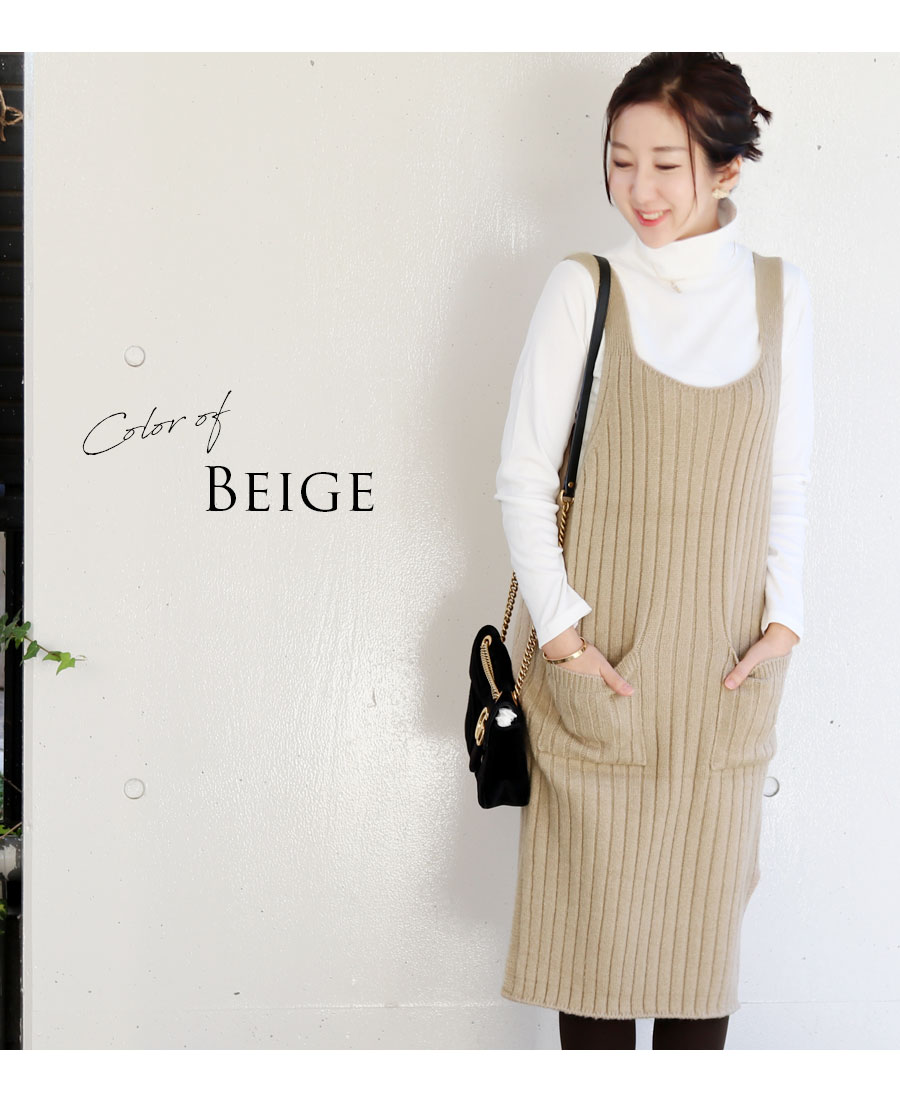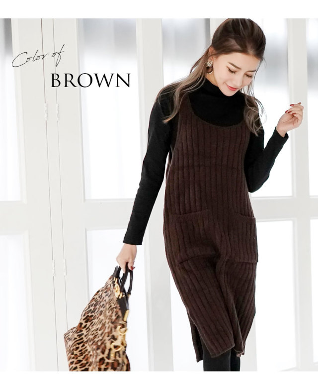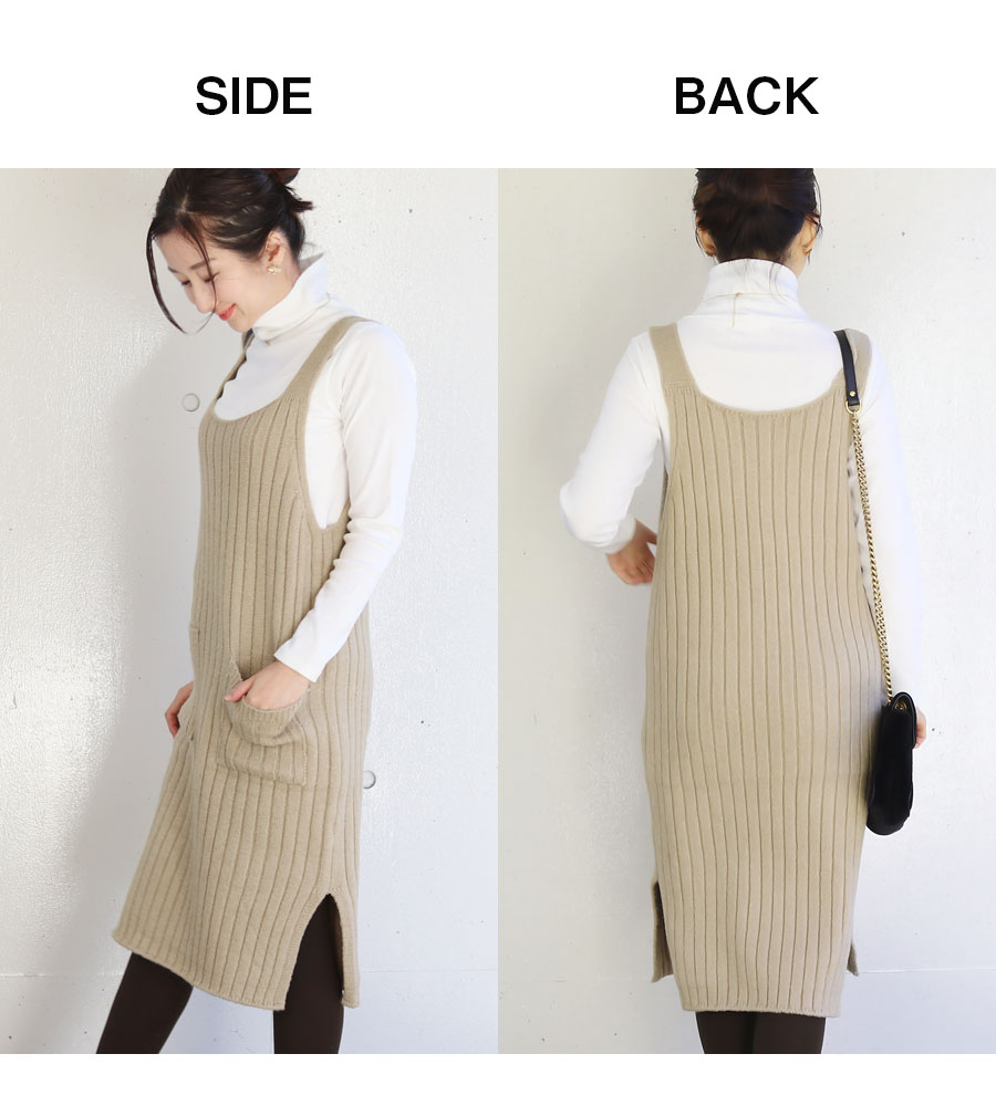 大人気の柔らかニットキャミワンピを寒い冬に向けて進化させた暖かもっちりのリブニット使いのキャミワンピ。
