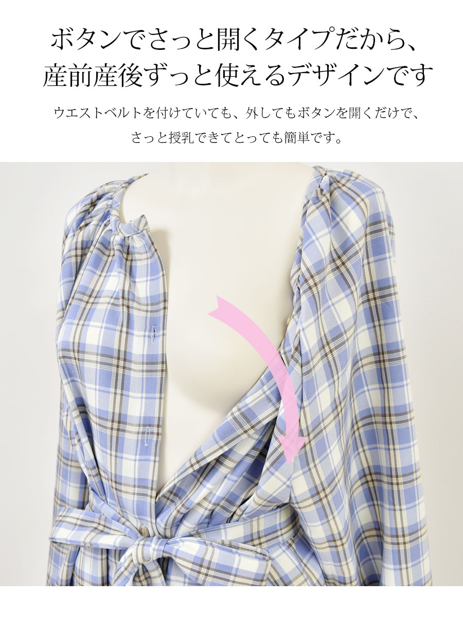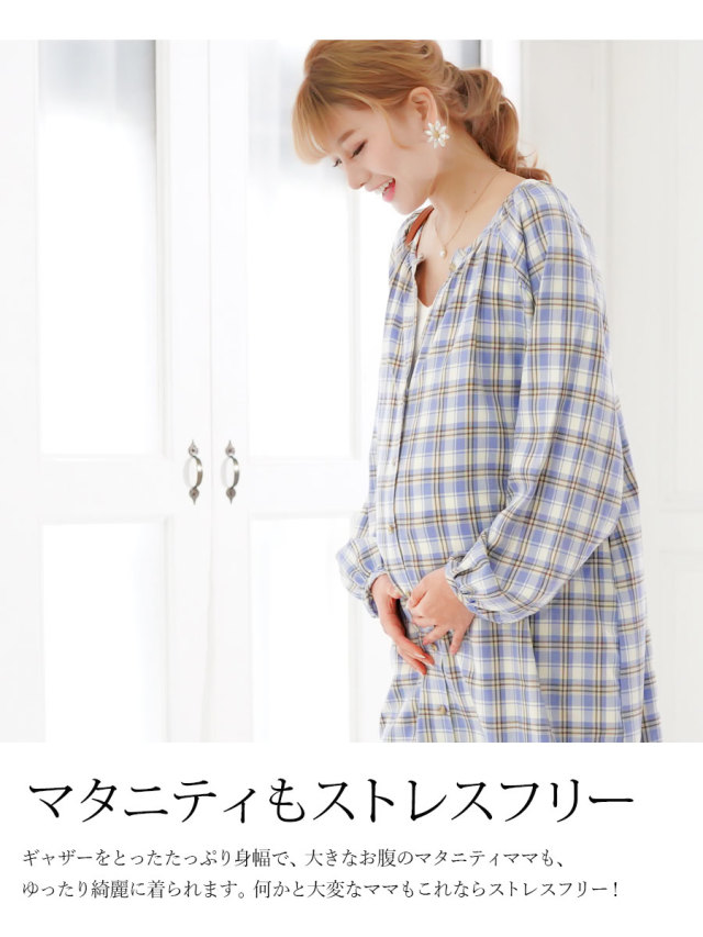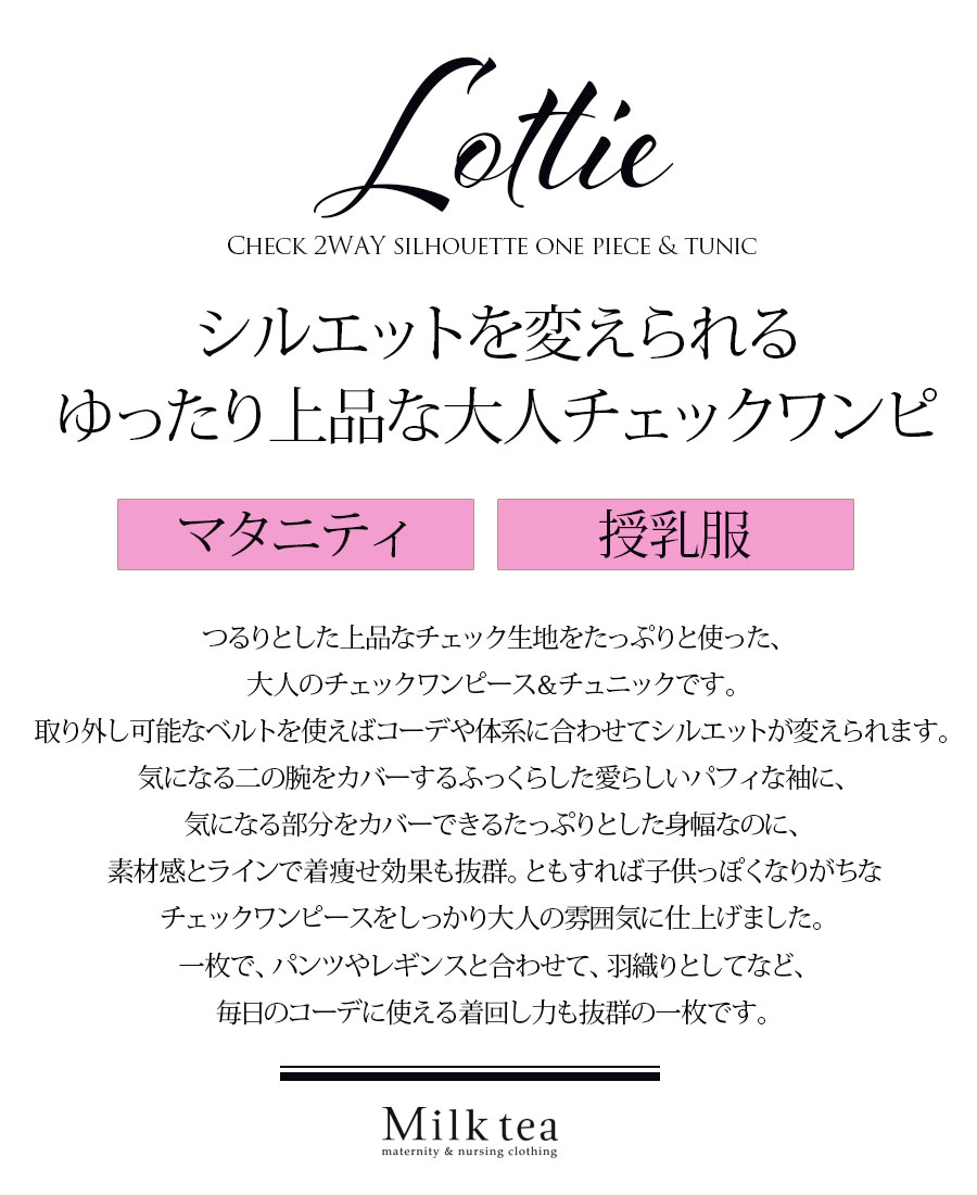 商品カテゴリ:授乳服 授乳 マタニティ 服 妊娠 妊婦服 レディース ワンピース ワンピ チュニック カジュアル チェック 大きいサイズ S M L LL 春 秋 MIlk tea ミルクティー ミルクティ