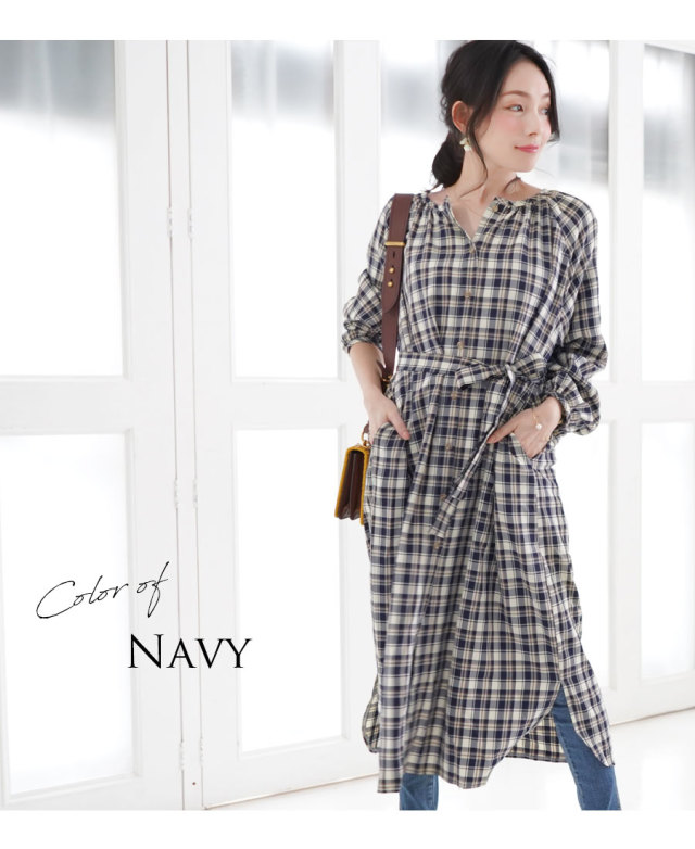 つるりとした上品なチェック生地をたっぷりと使った、大人のチェックワンピース&チュニックです。