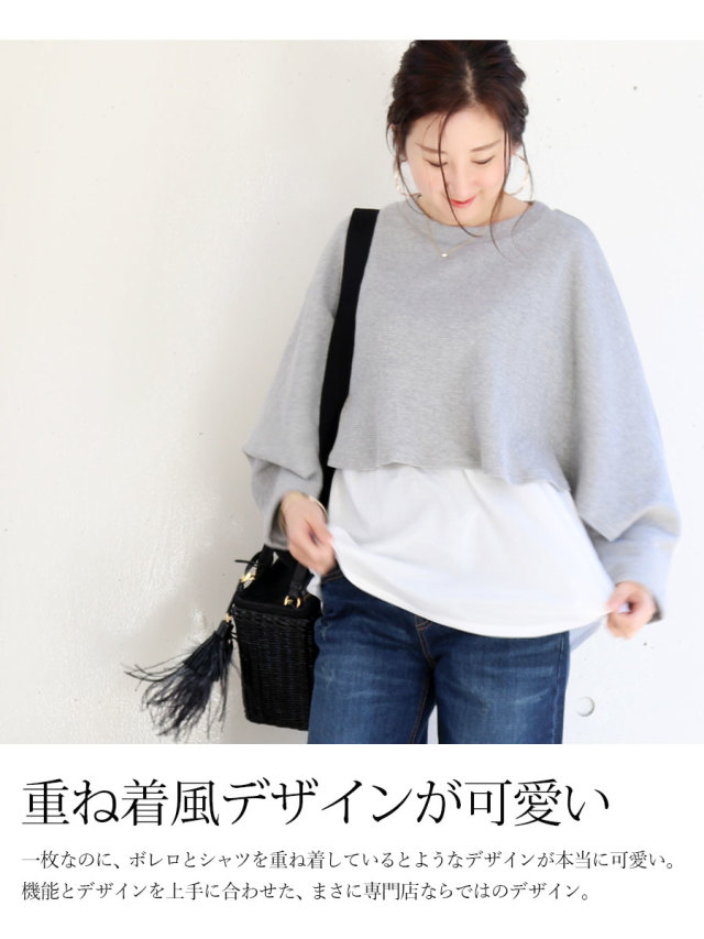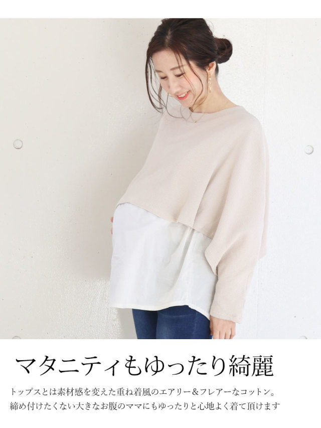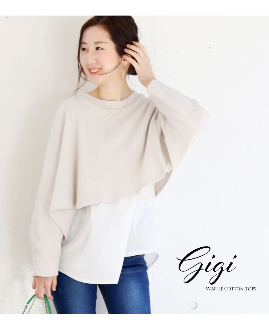 重ね着風のデザインで授乳ケープみたいに使えるワッフルトップス