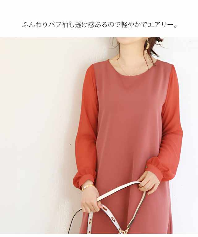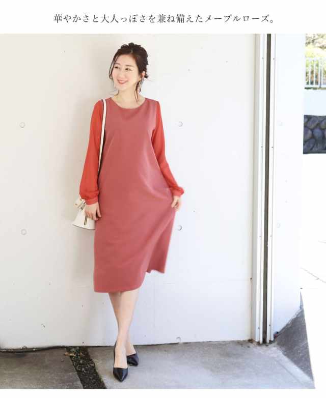 すとんと落ちるAラインと透ける袖で着やせ効果&体型カバー効果の高いデザインです。