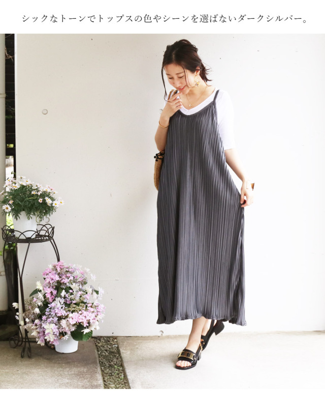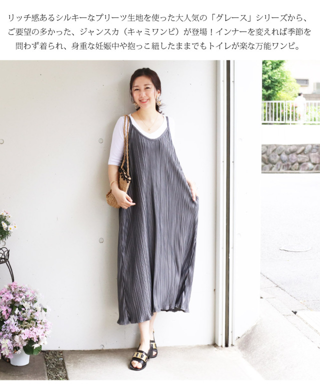リッチ感あるシルキーなプリーツ生地を使った大人気の「グレース」シリーズから、ご要望の多かった、ジャンスカ(キャミワンピ)が登場!