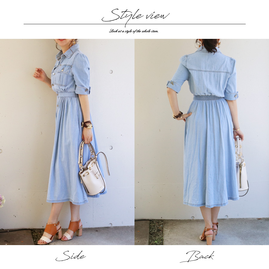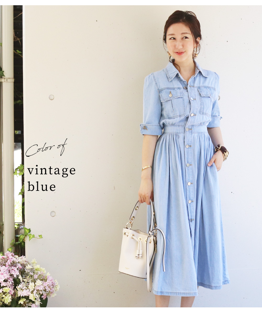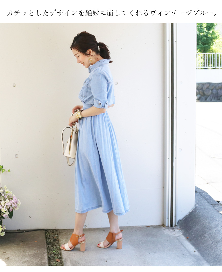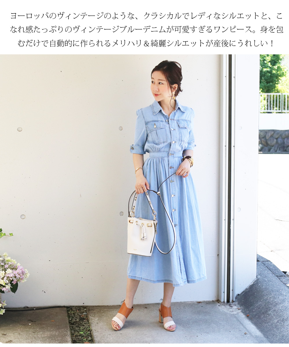 こなれ感たっぷりのヴィンテージブルーデニムがとてもおしゃれで可愛すぎる授乳服ワンピース。