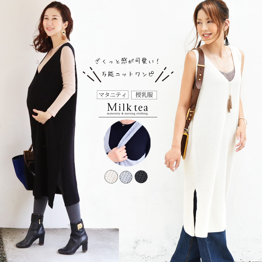 ざっくり着た感じが可愛くてこなれ感の高い授乳服&マタニティニットワンピ。