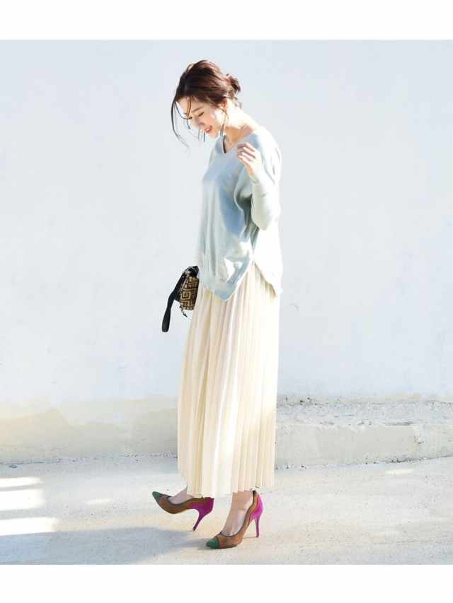 マタニティの大きなお腹で着たときも、流れるような綺麗な落ち感と、動きや風で広がるプリーツが女性らしく、360度どこからみても本当にキレイ。春、夏、秋、冬通年通してお使い頂けます。