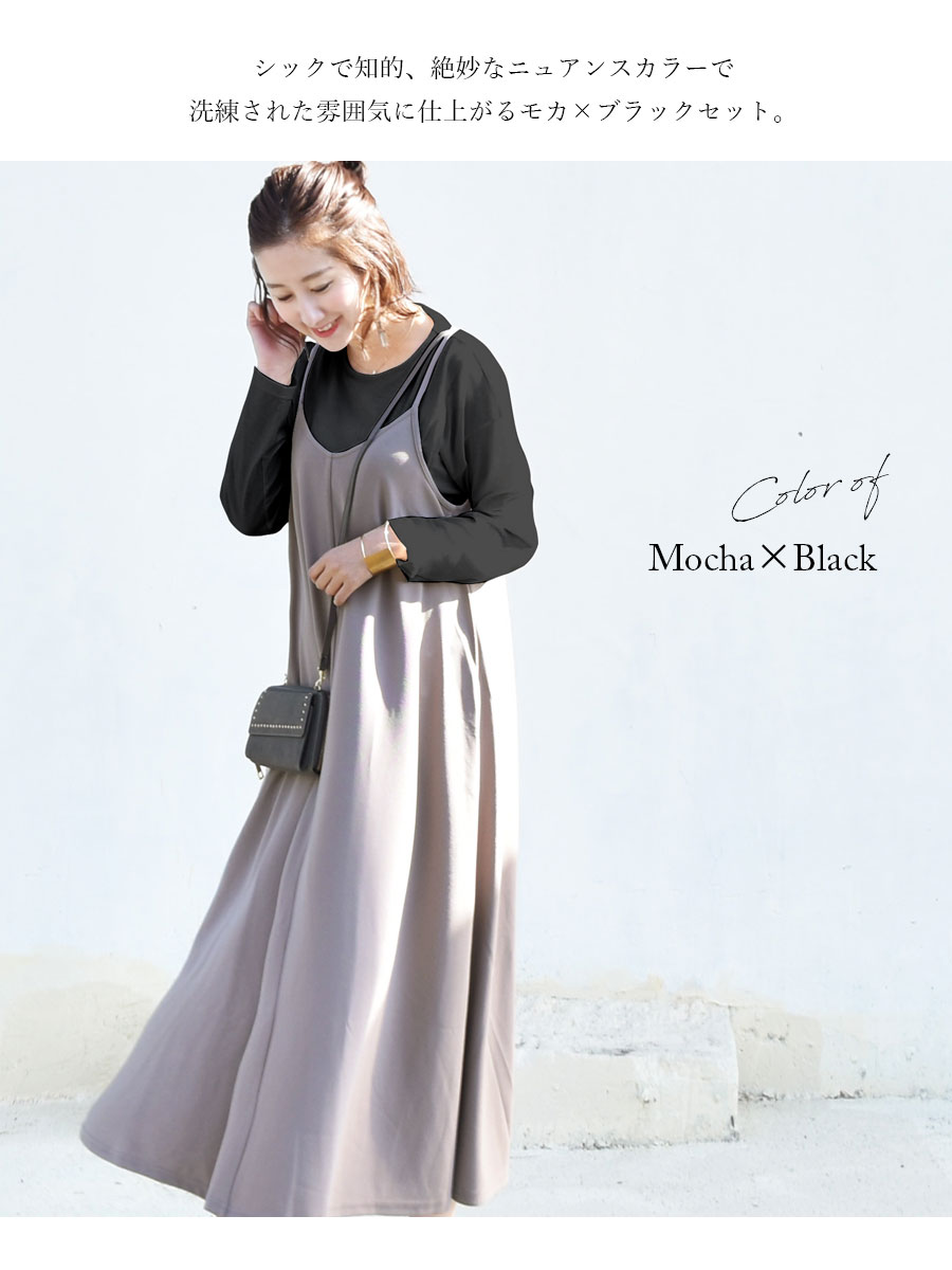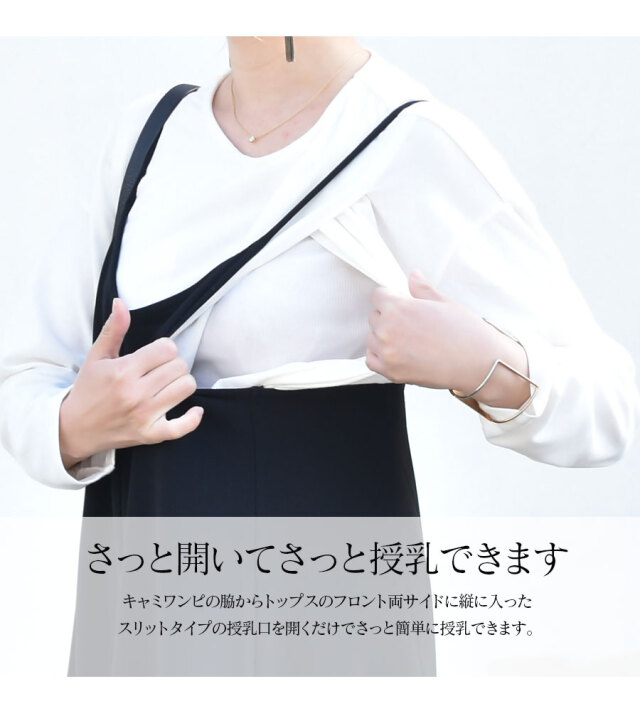 シンプルなのに着るだけでおしゃれに見える!リラックスできる美人でおりこうな抗菌防臭加工を施したキャミワンピと長袖授乳Tシャツのセットです。忙しいママの時短コーデにも大活躍する2点セットは、価格もぐぐっと抑えたプチプラも魅力。シンプルなのに大きなお腹でも、産前産後も綺麗な落ち感で着られるキャミワンピは、カラーも人気のくすみカラー&ベーシックなブラックをチョイス。今の時期嬉しい抗菌防臭加工を施し、ママもお子様も安心です(抗菌防臭加工はワンピースのみ)。授乳Tシャツは柔らかな素材を使い、前身頃に大きく縦に入ったスリットからさっと手間いらずで授乳できます。スリットはデザインに馴染ませてあるので、授乳服にはみえず、ワンピとセットでもそれぞれでも使えて、コーデの幅が広がります。