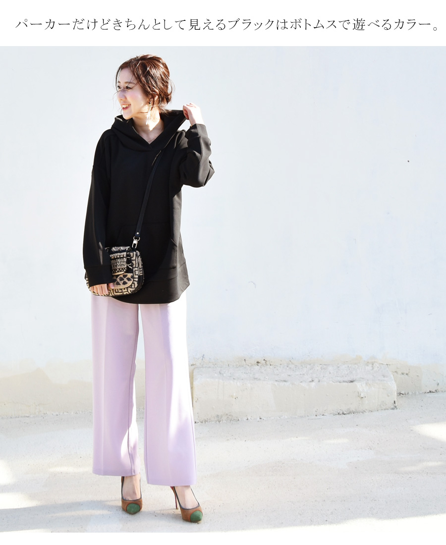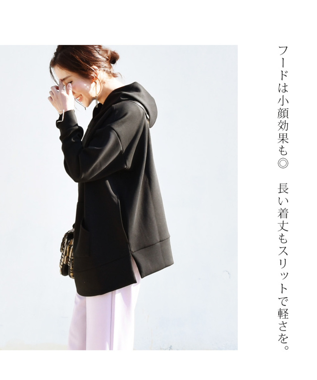 ざっくりゆったり着れながらも、縦長のシルエットで、体型をスリムにきれいに見せてくれます。