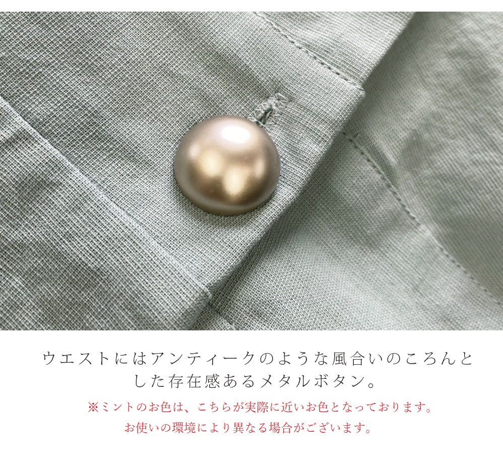 アンティークのようなころんとしたメタリックな丸ボタンがポイント。