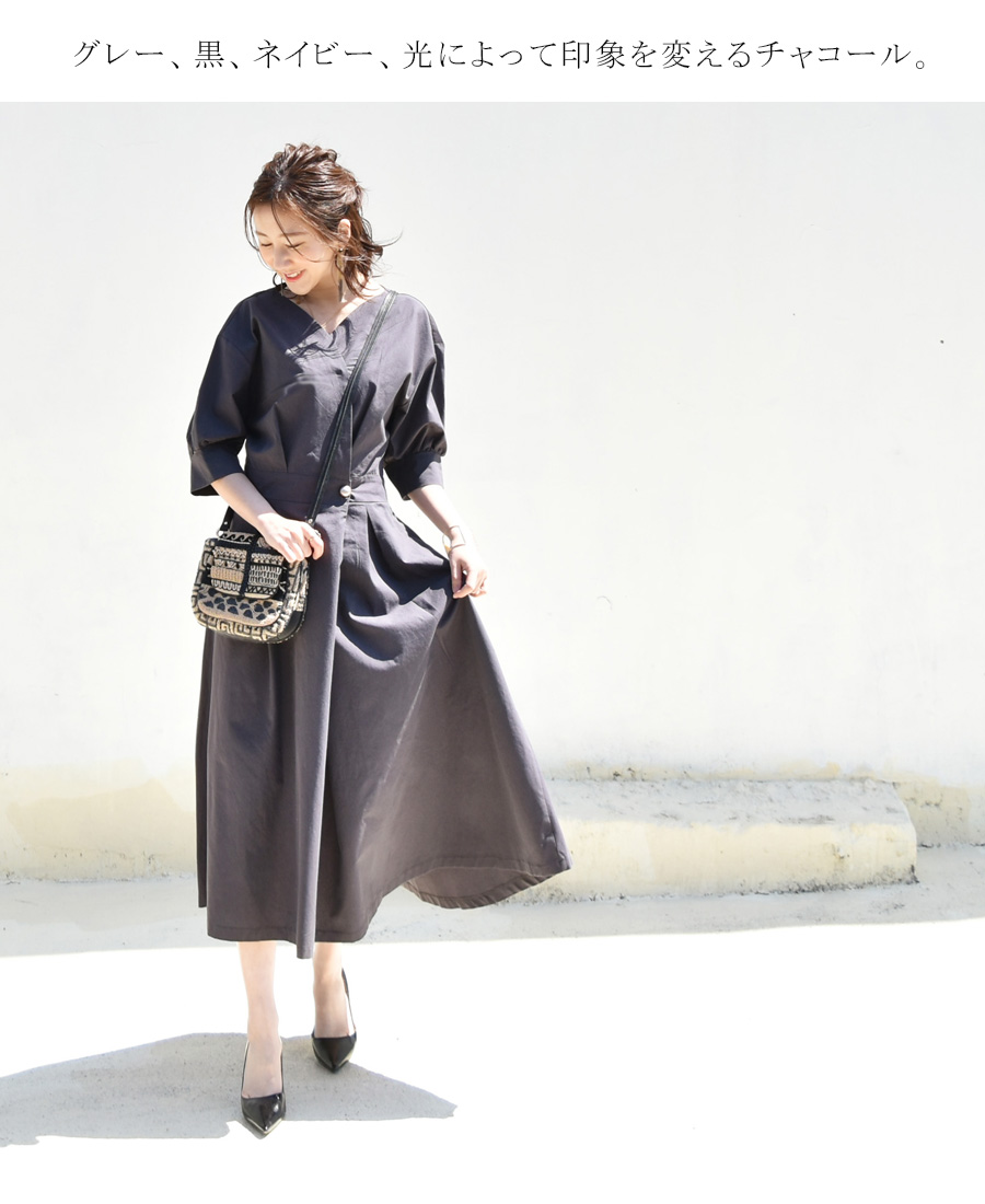 ハリのあるコットン素材でドラマチックなシルエットも気張らずナチュラルに見せてくれます。