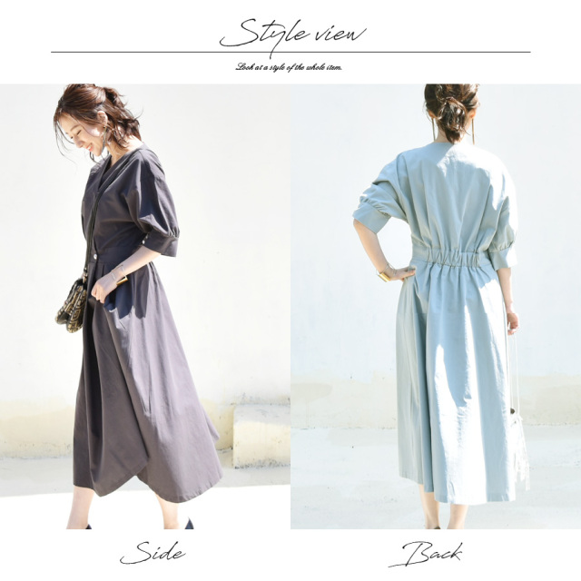 長めの半そでは、春〜梅雨〜夏〜秋と変化する気温にもつよく、また、二の腕をほっそりと見せてくれます。