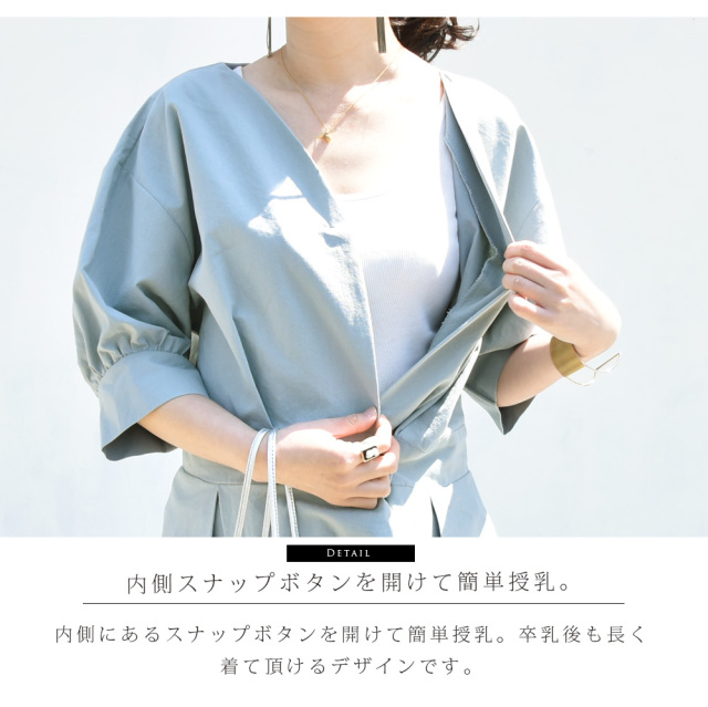 授乳は内側のスナップボタンをはずして片手で簡単にしていただけます。