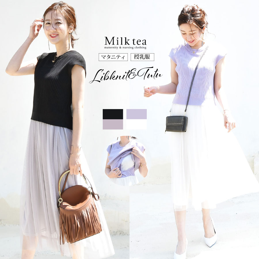商品カテゴリ:授乳服 マタニティ 授乳 妊娠 妊婦 妊婦服 妊娠出産 産前産後 ワンピース ワンピ リブ ニット チュール レディース 半袖 コーデ 時短 ママ 春 夏 大きいサイズ お出かけ フォーマル Milk tea ミルクティ ミルクティー