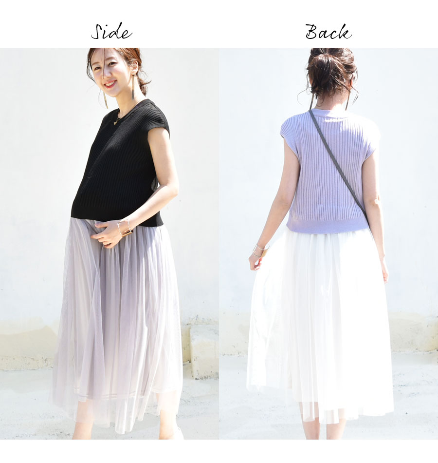 | 製品名: | <授乳服・マタニティ>リブニット×チュールスカートドッキングワンピース(スリットタイプ) |